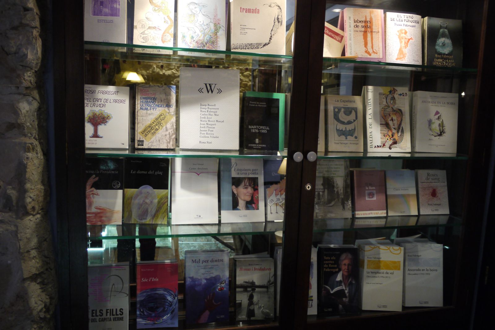 La vitrina, amb l’obra completa de Rosa Fabregat, cedida per Ramon Mª Razquin.