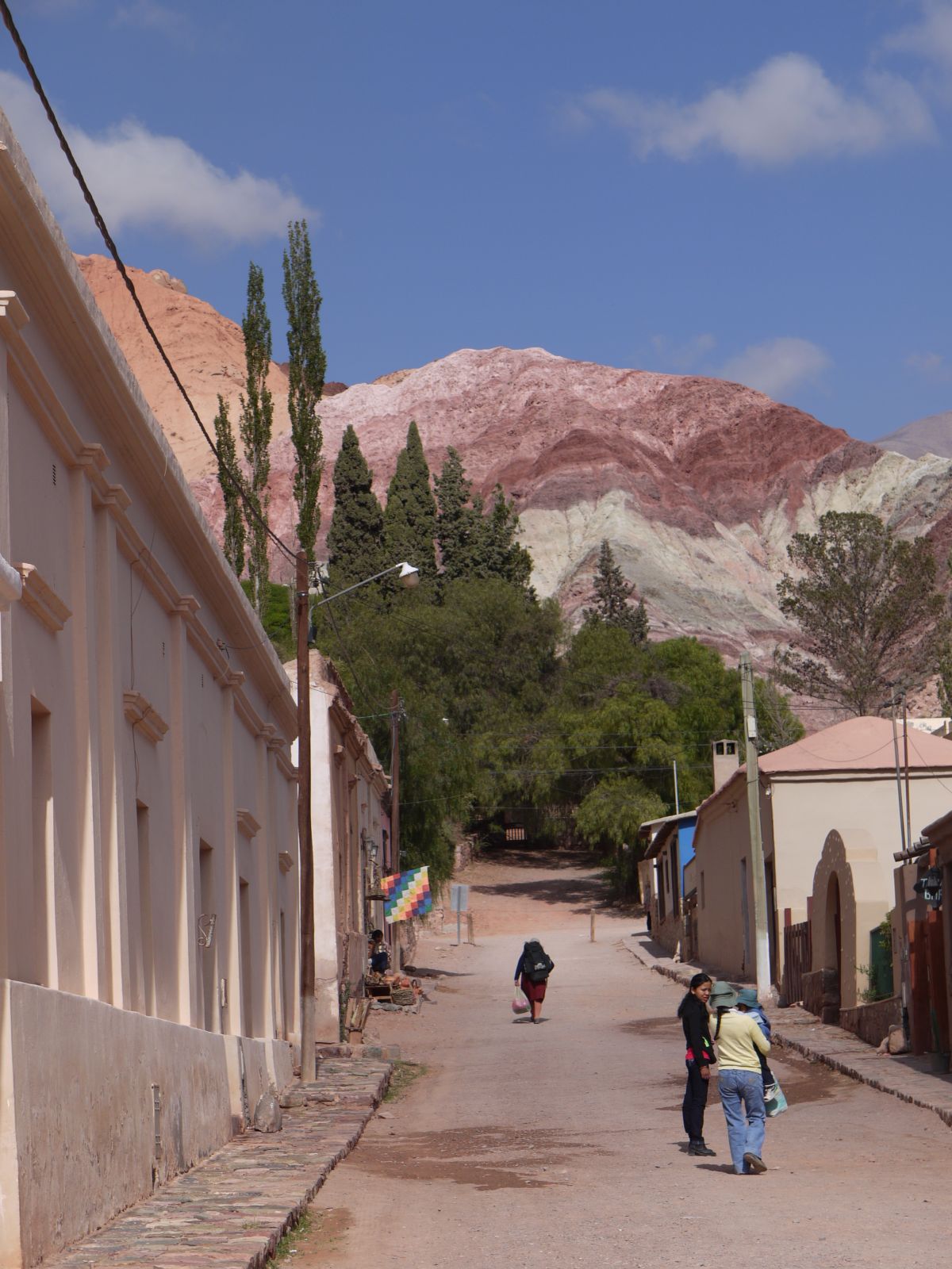 Aquest és l’anomenat Cerro de los Siete Colores i es troba al petit poblet situat a la Cordillera andina, a la zona argentina, i molt a prop de les fronteres amb Xile i Bolivia. Les edificacions del poble es confonen en molts casos amb els colors de les muntanyes formant uns conjunt de tonalitats molt semblants i de tons més aviat suaus. Per contra l’artesania que fabriquen, que és molt variada, està presentada amb colors vius i vistosos.