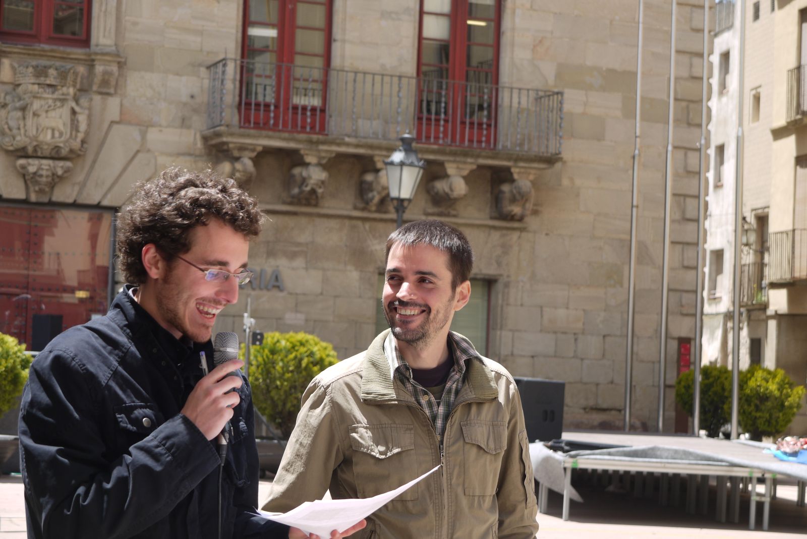 El Xavi Miret, amb el premi a la mà, un bon pernil, a punt d’entregar-lo als grallers dels Geganters de Cervera que van ser els guanyadors.