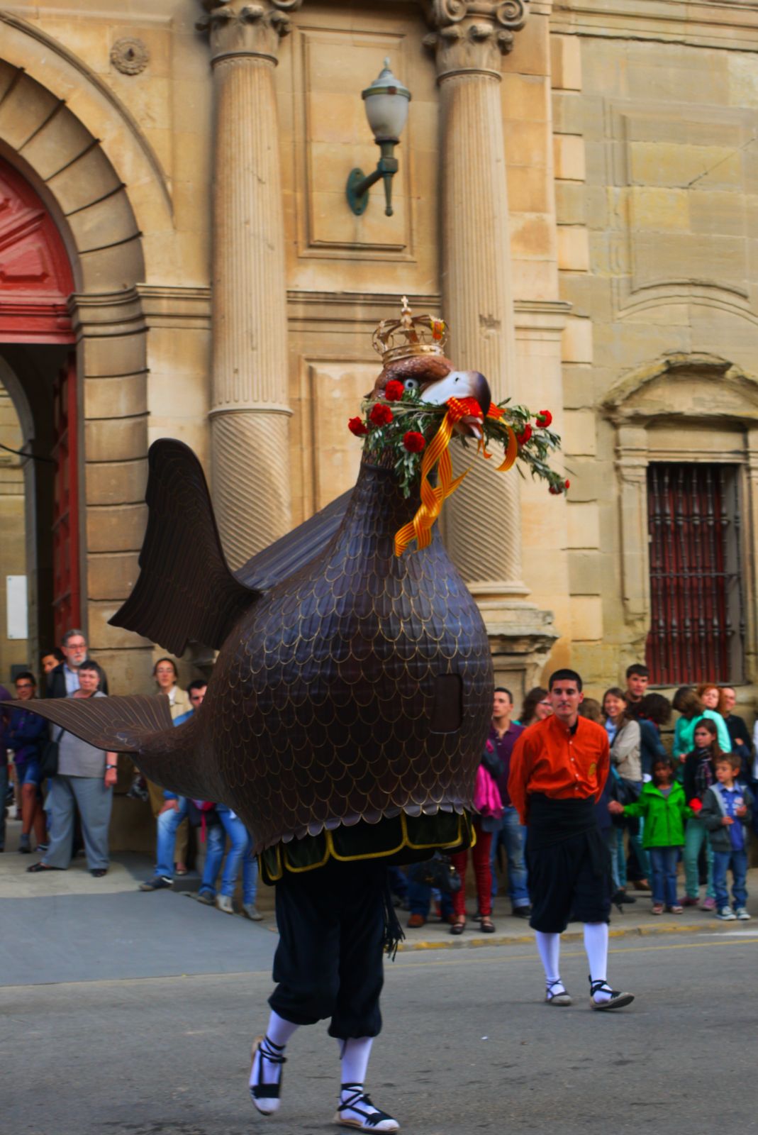 I a la tarda el Seguici. Que caldrà mirar-lo des dels ulls de l’Àliga de Cervera ja que aquesta ha estat la seva primera Festa de Corpus. Tot i que anant amunt i avall, ella habitualment està en una dependència de la Paeria, ja havia passat pels llocs que passarà avui, però ho farà amb una nova prespectiva: la d’estar acompanyada i la de la seva presentació al poble en una data, que sap que és molt important, que és el Corpus.