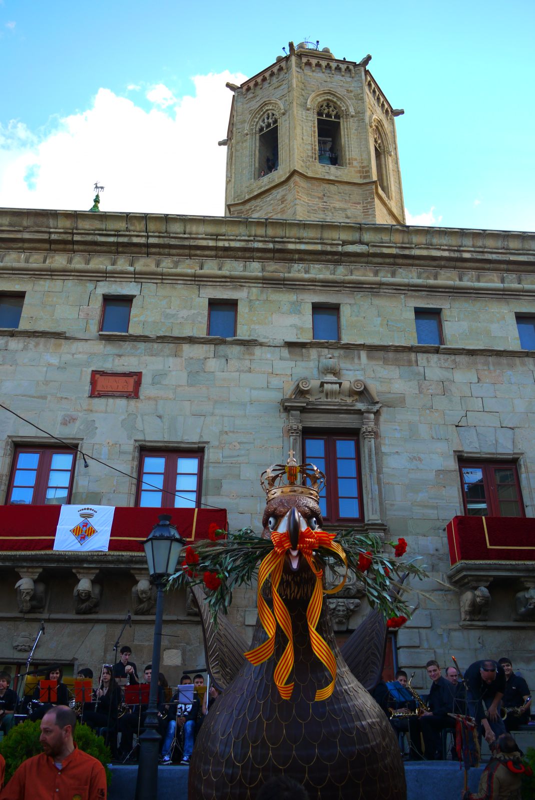 Ja hi és! L’han posat d’esquena al Campanar, tan maco, perquè pugui veure bé tot el que faran, ja que avui ella és la convidada d’honor!