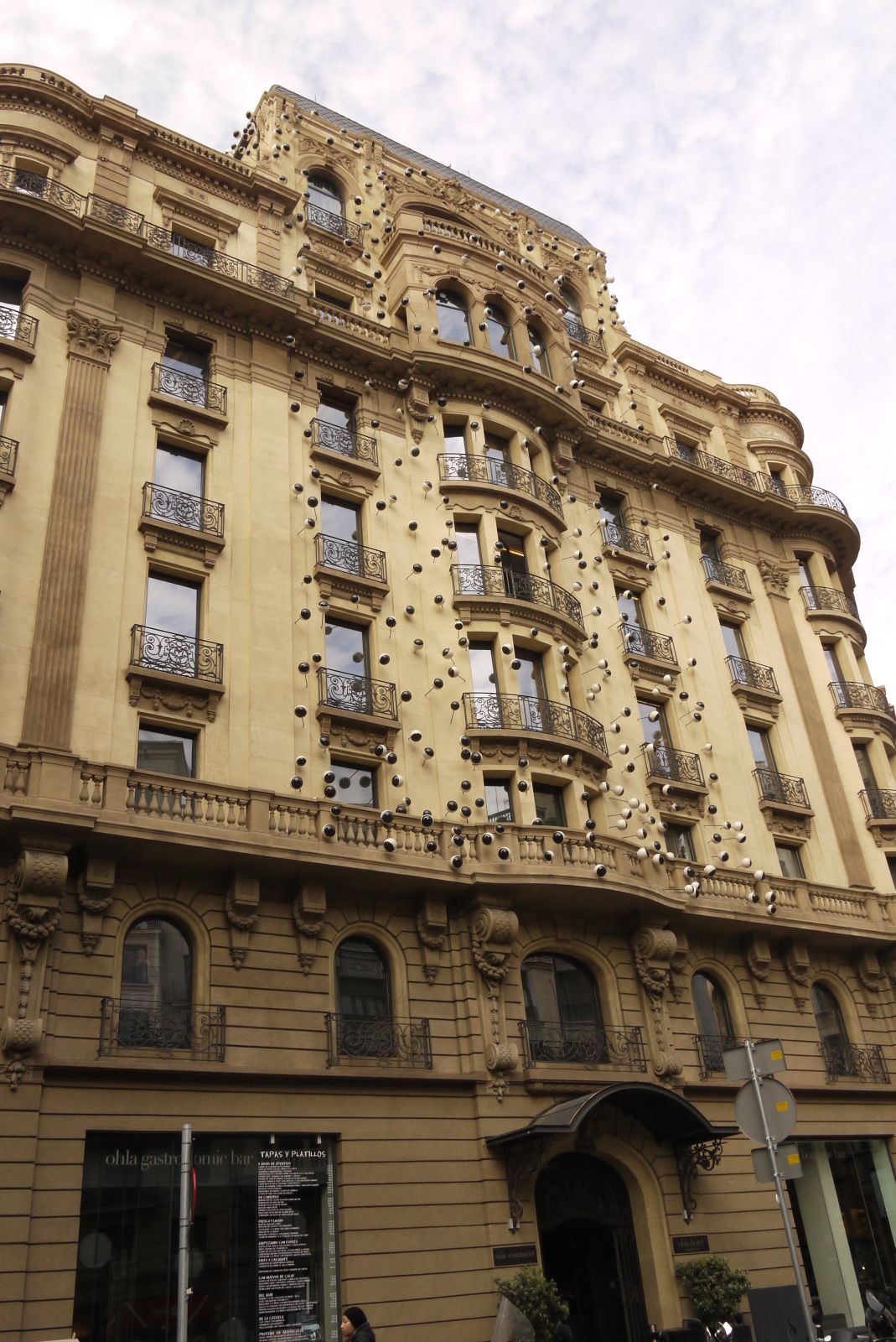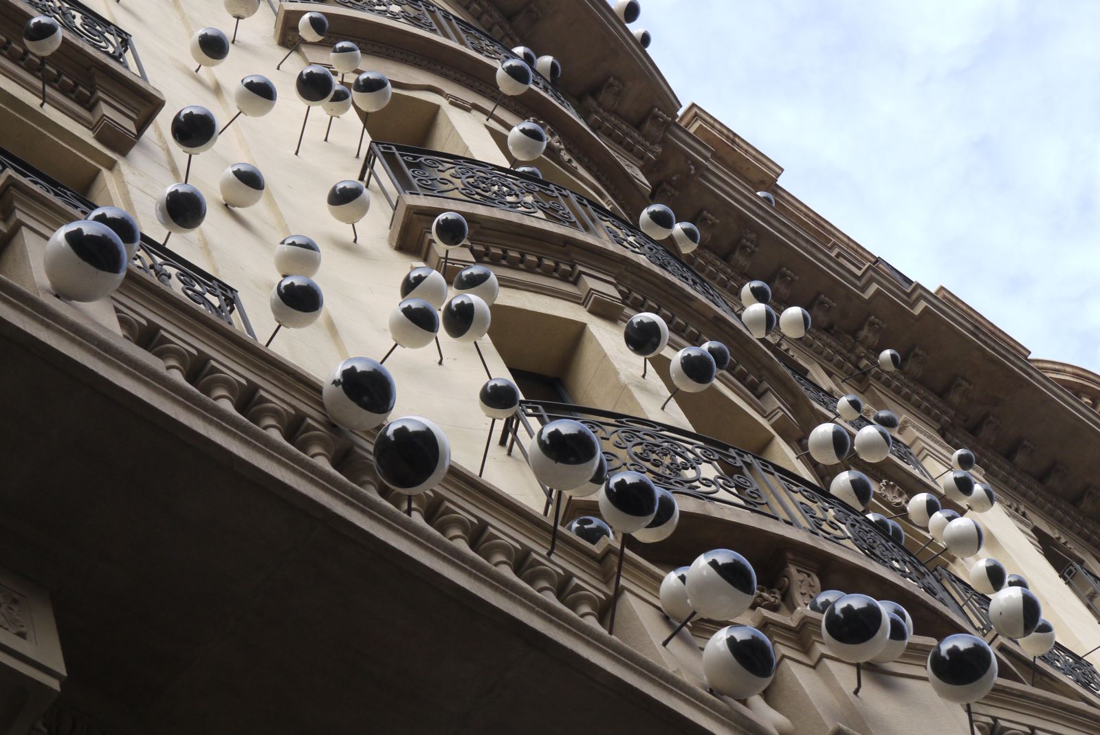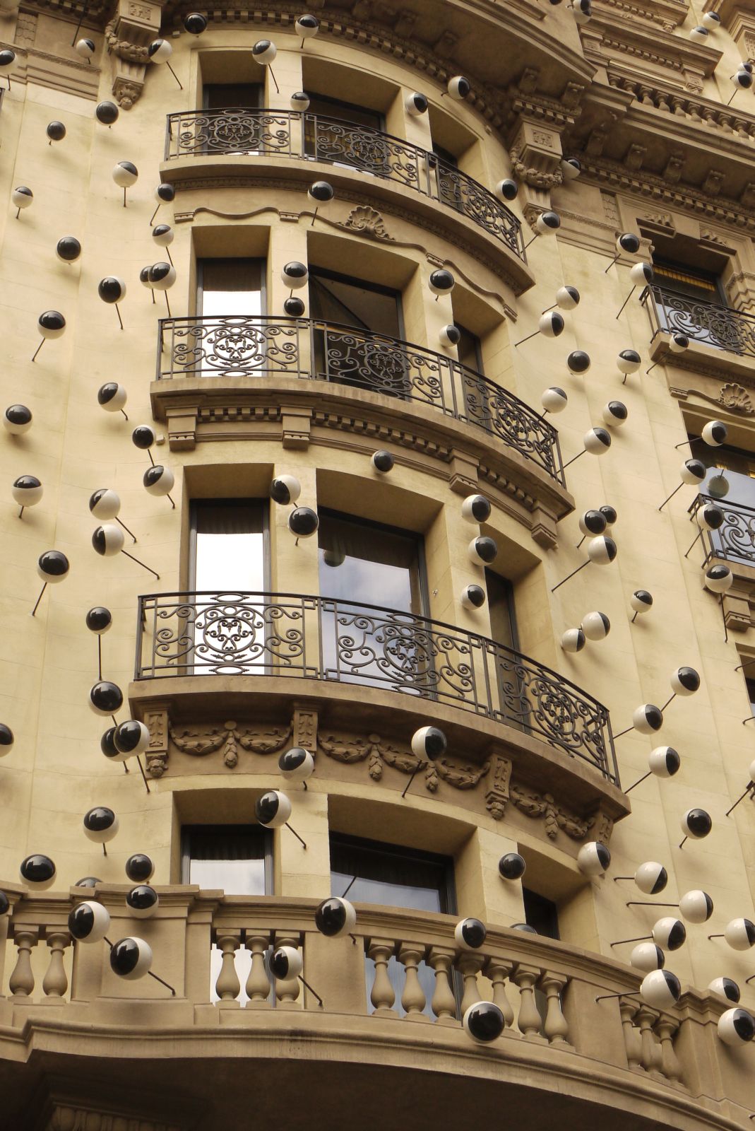 Ulls que miren, que vigilen, que sorprenen. És curiós que, un edifici de tota la vida, pugui gaudir d’una customització tan atrevida. En altres temps això hauria estat totalment impossible. Avui aquest toc d’originalitat el renova, el distingueix i el fa únic. Està a l’avinguda Pau Clarís, molt a prop del Palau de la Música, per tant és molt fàcil de veure.