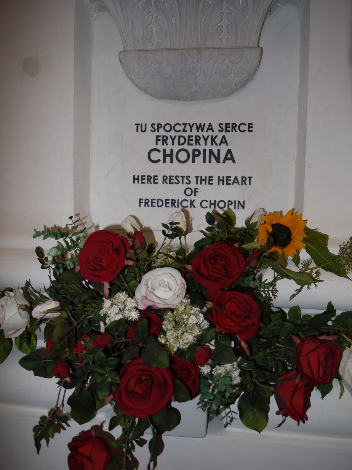 Acabo aquest post amb una curiositat que no he vist en cap altre lloc. En aquesta esglèsia s’hi troba un record del músic polac, Frederic Chopin. Ell va morir a Paris i allí el van enterrar. Doncs què hi tenen aquí?. Ni més ni menys que el seu cor. Li van treure del pit i el van portar a la seva estimada Varsòvia perquè, una part d’ell es quedés eternament a la ciutat, una ciutat que també l’estima.
