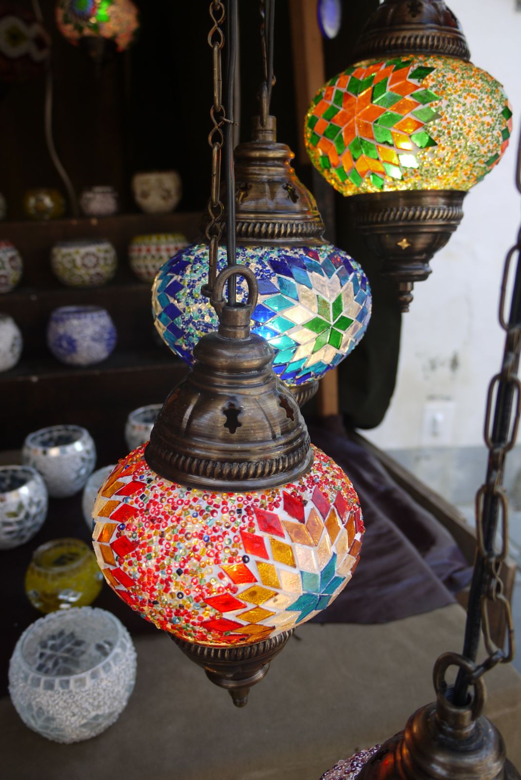 Els llums de colors vius, segueixen el treball en mosaic, tan característic de la culturà àrab.