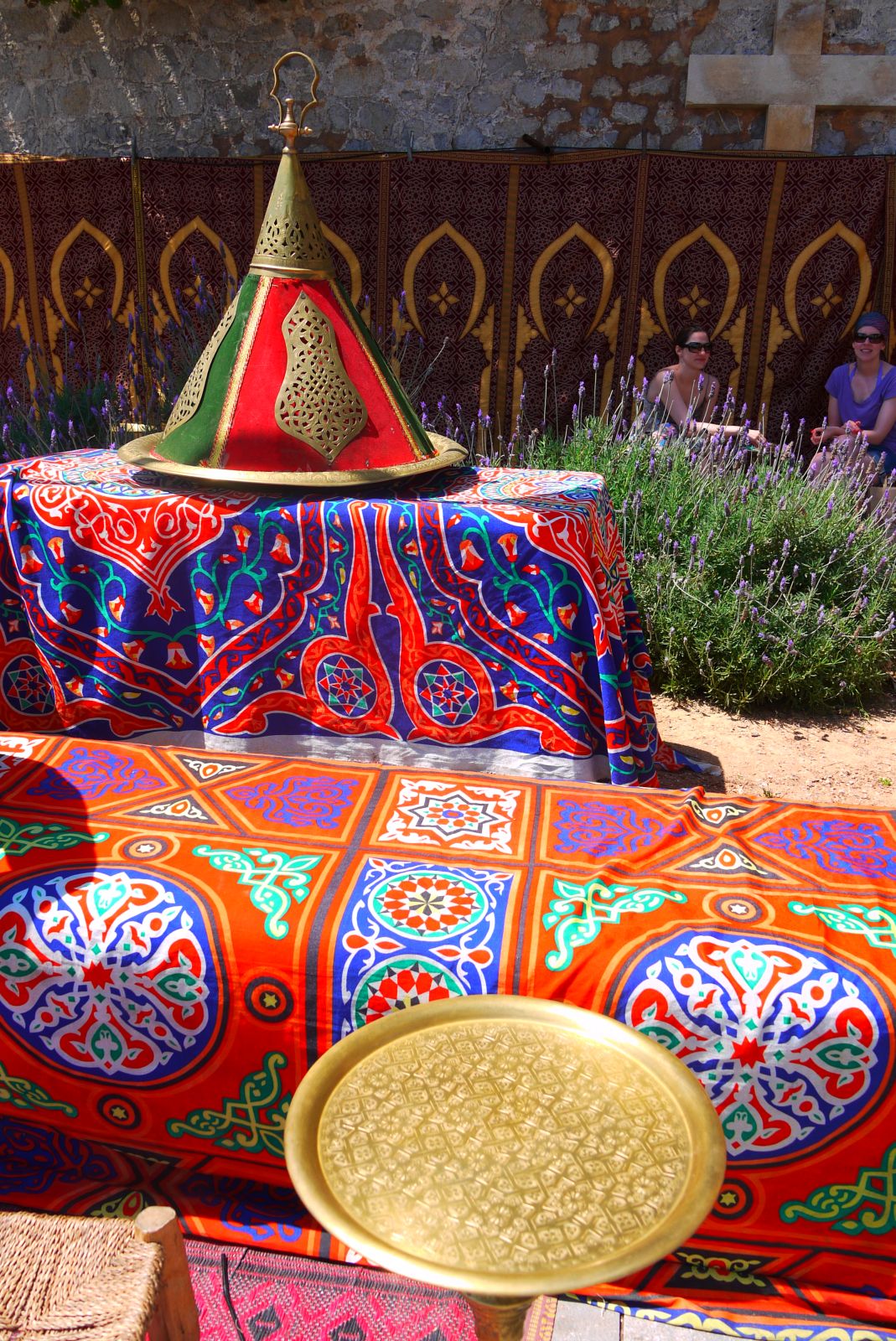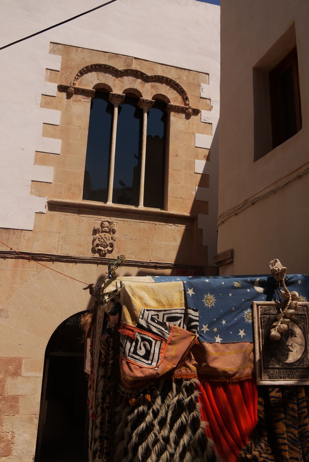 Aqui la pedra es presenta habillada amb filigranes que contrasten amb les robes d’una tenda preparada per rebre els que volen que els hi llegeixin les mans.