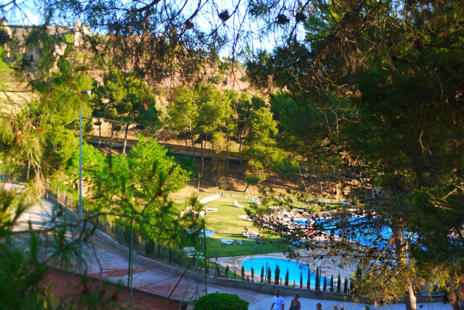 Els records m’emocionen quan arribo al banc que hi ha en aquesta zona, a mà dreta de la porta d’entrada. És el banc om m’asseia amb el meu pare i sé que ell, sovint sol o amb algú altre, també hi passava estones. Cap a la dreta el que es veu és la zona de les piscines. Un plaer per la vista amb el contrast del verd i el blau i l’activitat llunyana dels que estan gaudint d’aquest espai movent-se, llunyans, però visibles.