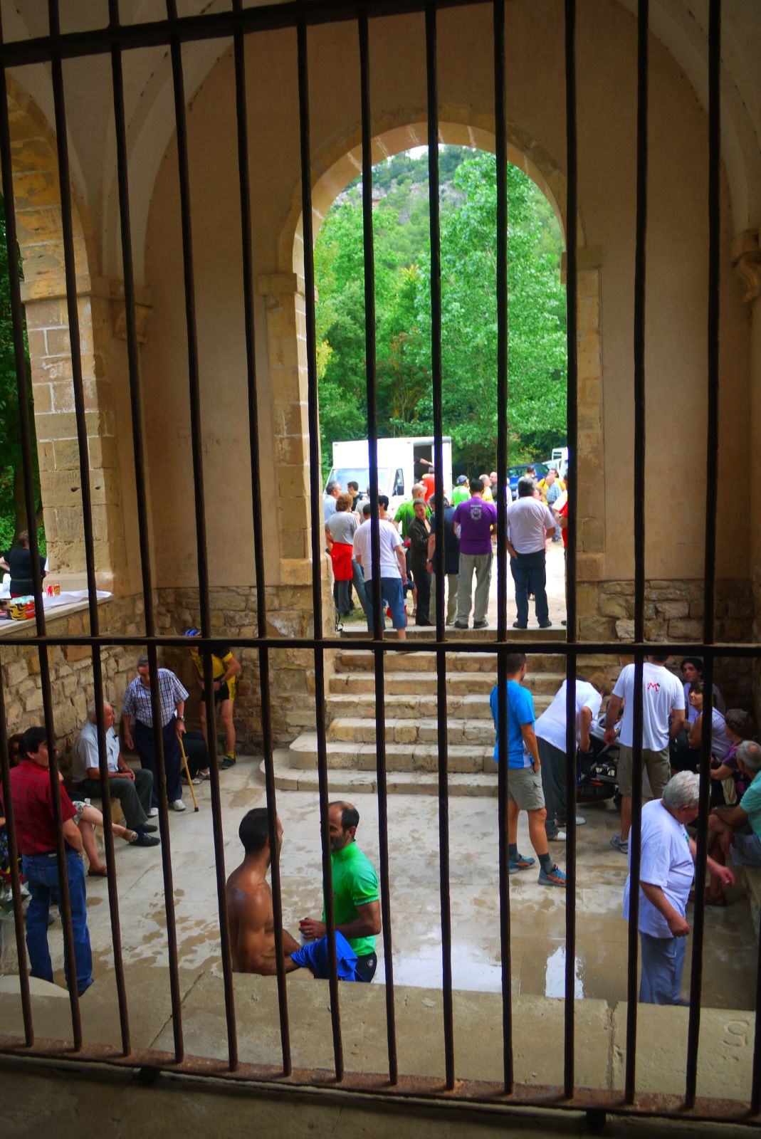 Des de la capella podem veure la zona de les fonts. Observeu les garrafes d’aigua, ja plenes, per prendre cap a Cervera. És l’aigua que es repartirà els dos dies de la Festa de Sant Magí.
