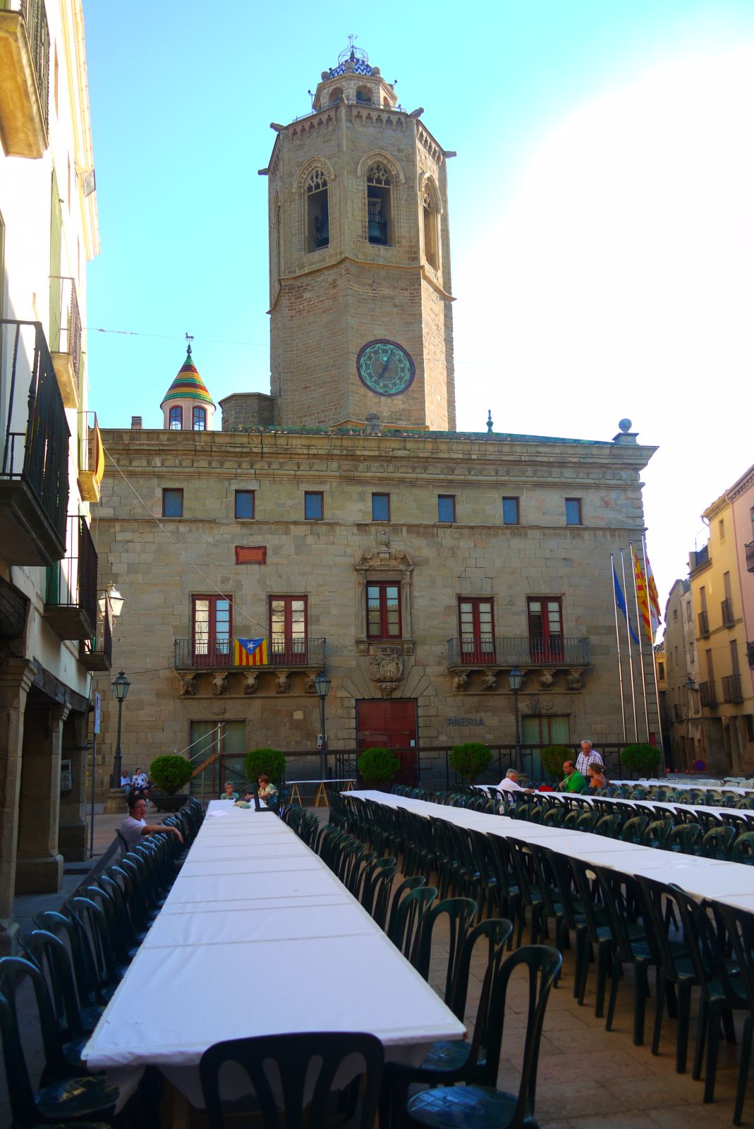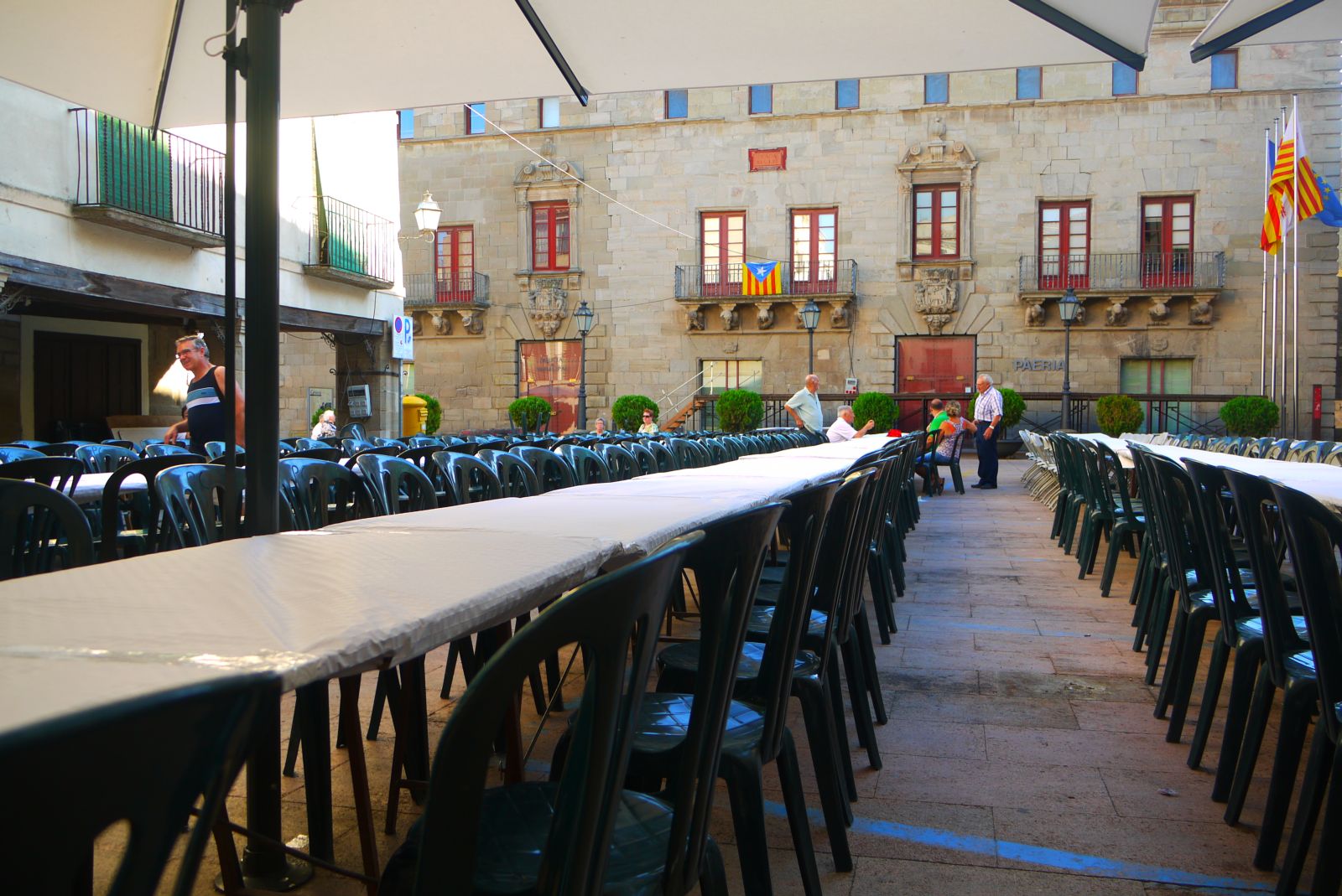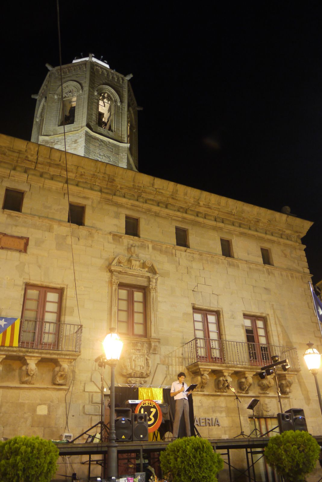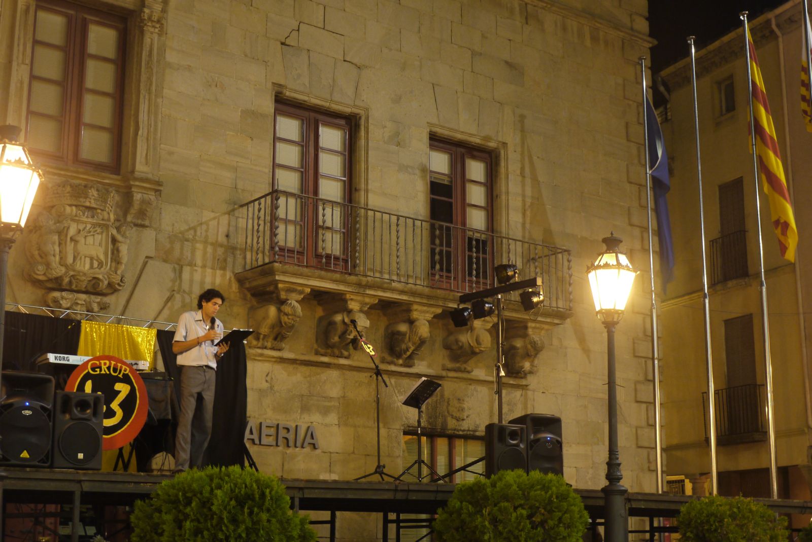 La plaça, com sempre, feia molt goig i representa un decorat magnífic per qualsevol acte que s’hi faci. El presentador Xavier Joan enceta el discurs de presentació.