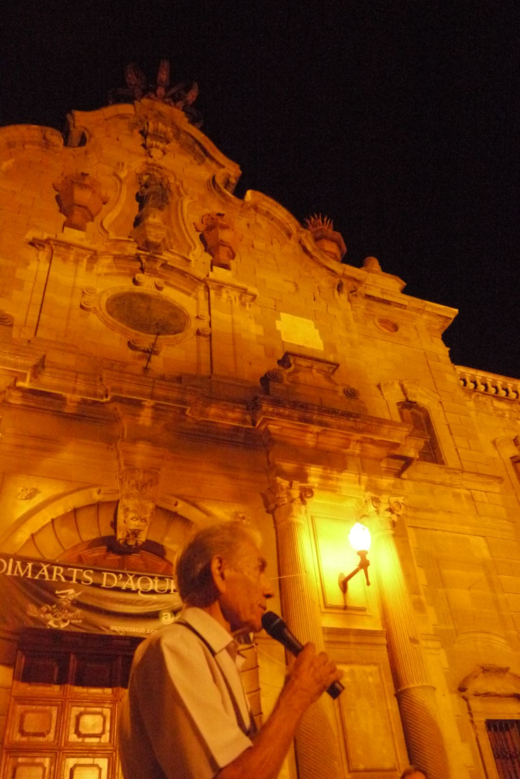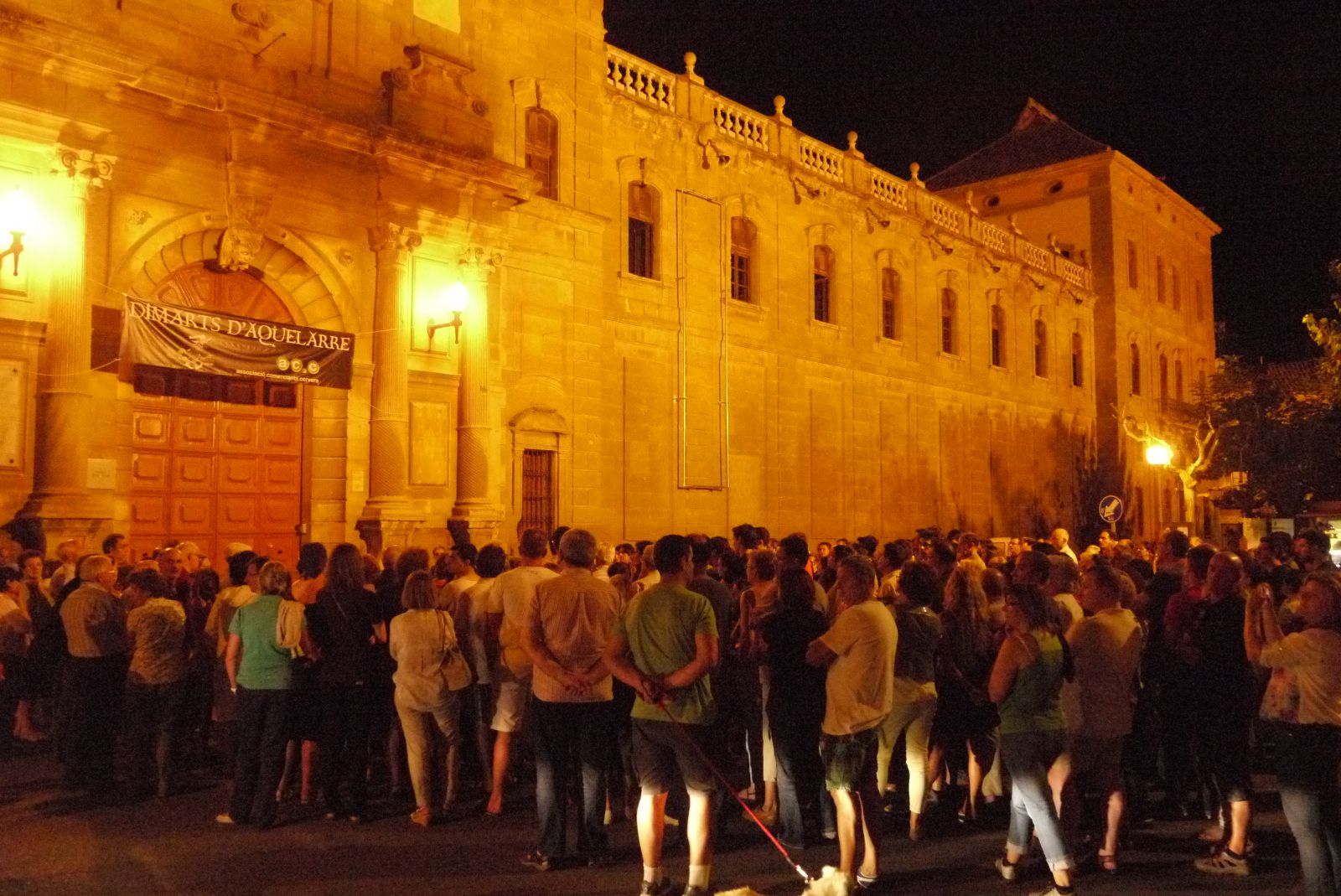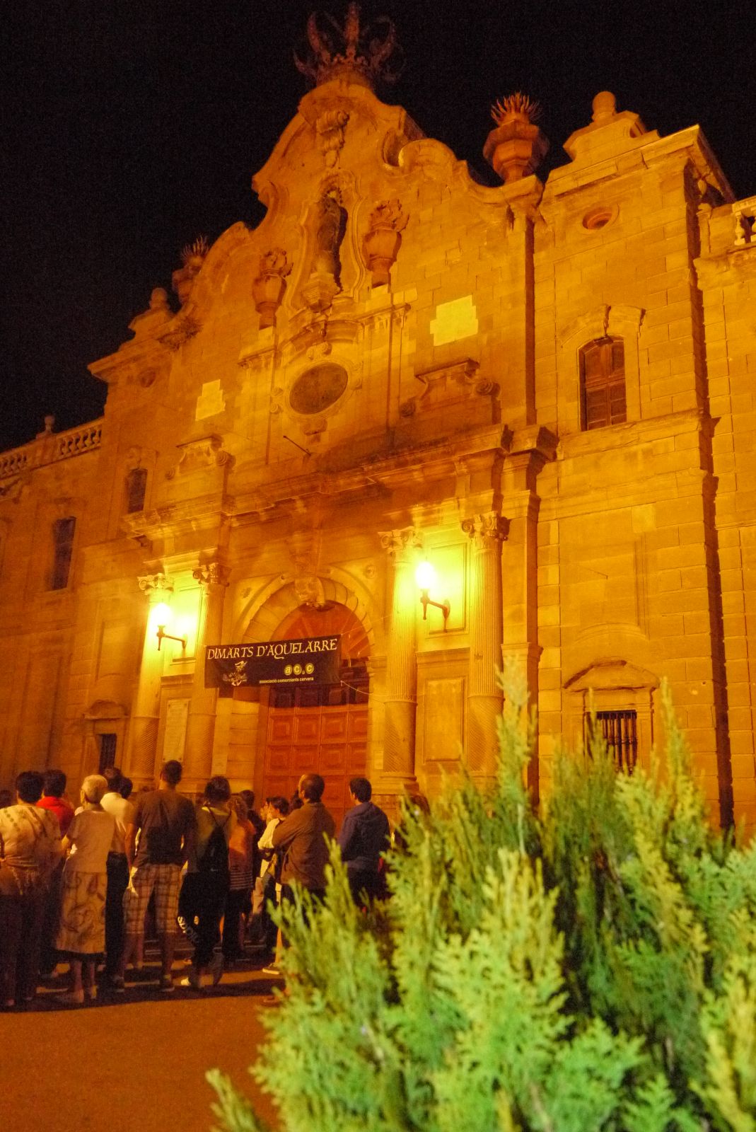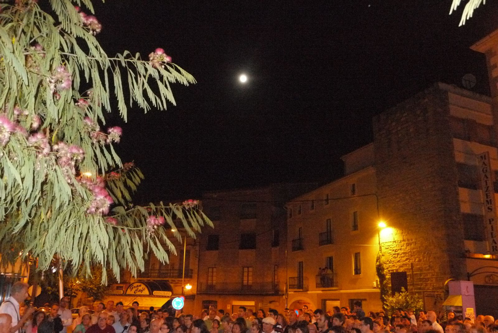 Fem una parada a la plaça Santa. La nit es va presentar amb un temps fantàstic i la companyia d’una lluna exultant va arrodonir aquesta passejada nocturna pels carrers de Cervera.