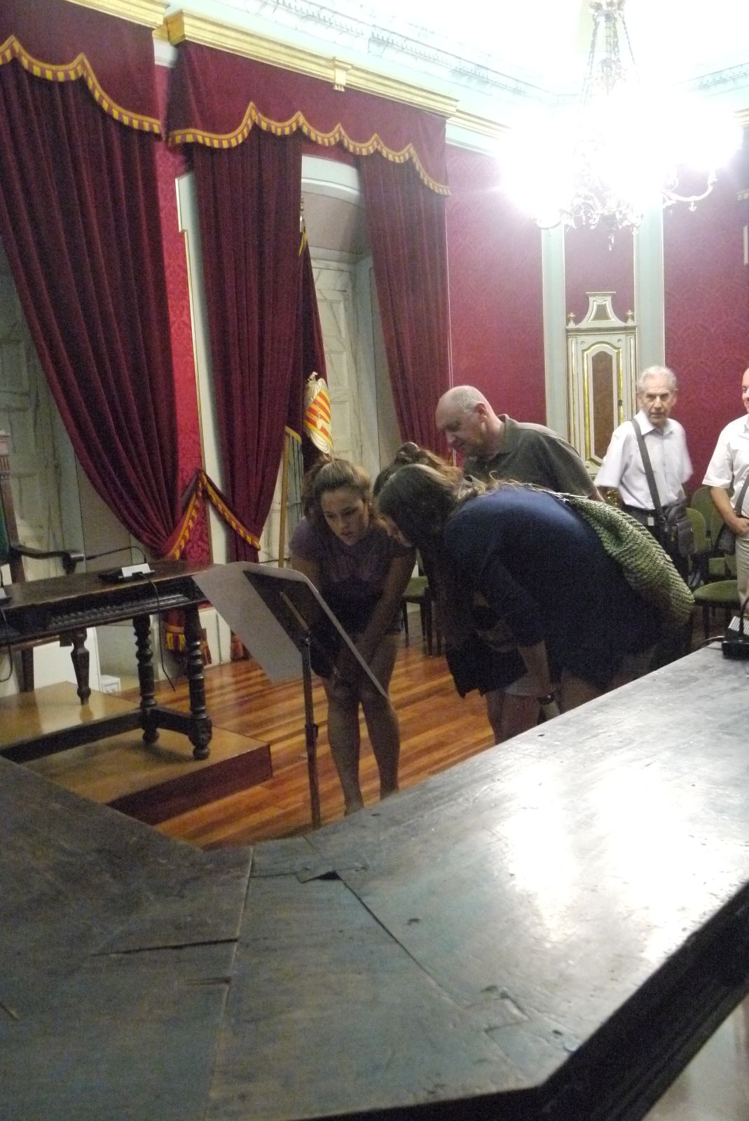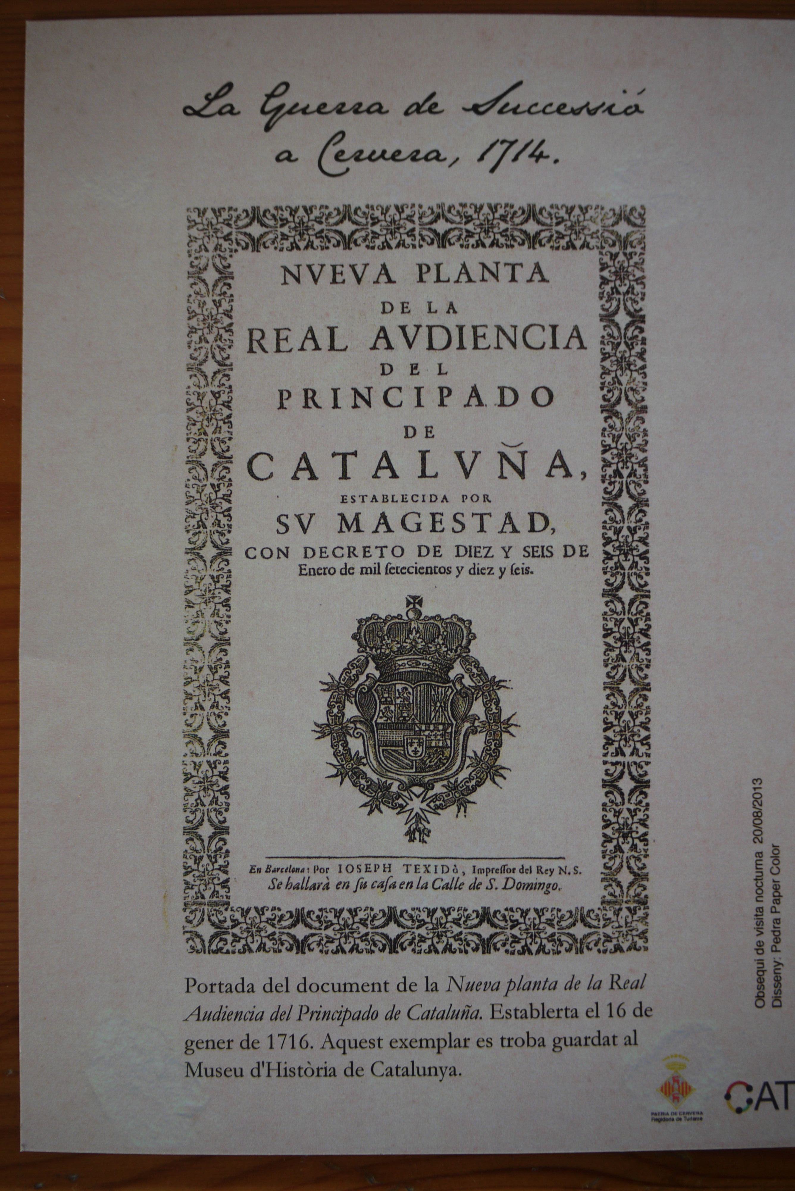 Comencem a seguir el darrer itinerari que va estar dedicat a la Guerra de Successió. S’enceta a la plaça Major on Forcat fa la presentació i convida a tothom a passar per la Sala de Plens de la Paeria per veure un important document.