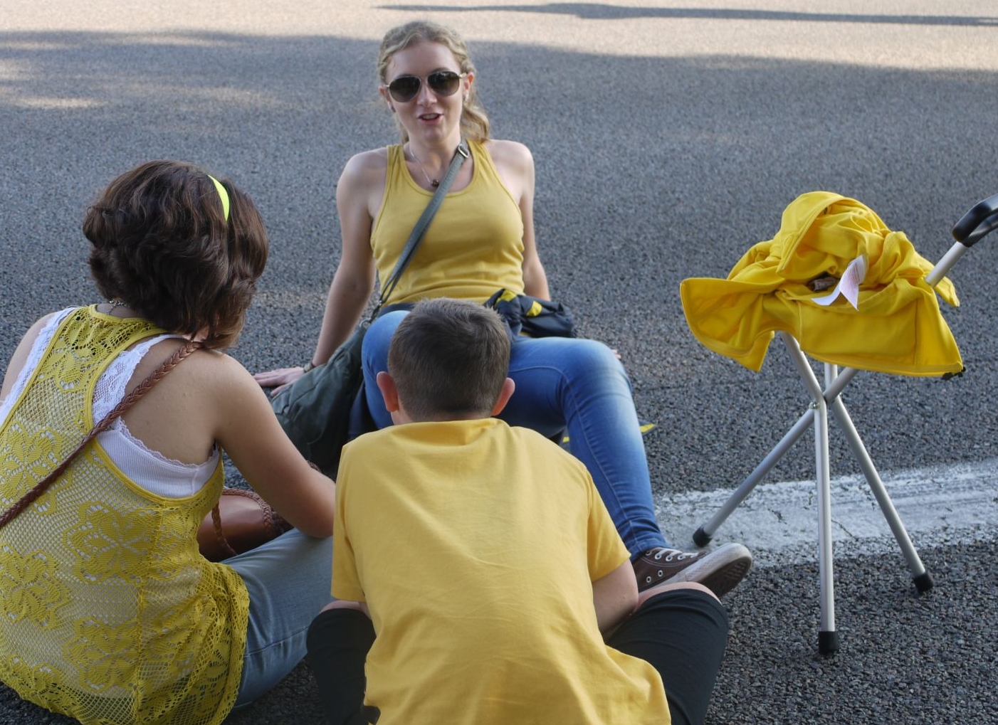 Esperant l’hora del Cant dels Segadors, programat per les 6 de la tarda, seure al terra per descansar una mica va ser una bona solució.
