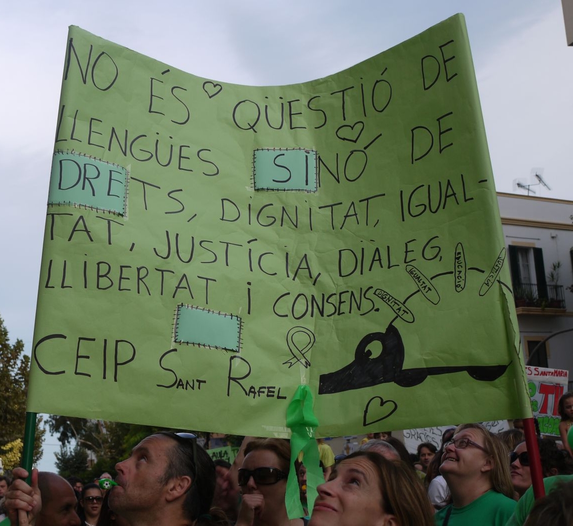 Pel que fa a que la manifestació de diumenge en el sentit de que, des del govern balear es va dir que s’havia polititzat, jo que vaig estar a la de Eivissa, puc assegurar que de cap manera. Com podeu veure en aquest post l’única reivindicació que es feia era en defensa de l’escola i contra aquest absurd projecte d’ènsenyar en tres llengües, quan el professorat no en domina una d’elles. Un despropòsit que els pares volen frenar ja que els seus fills no es mereixen rebre aquest desgavell amb el que s’ha enrocat el tal Bauzá.