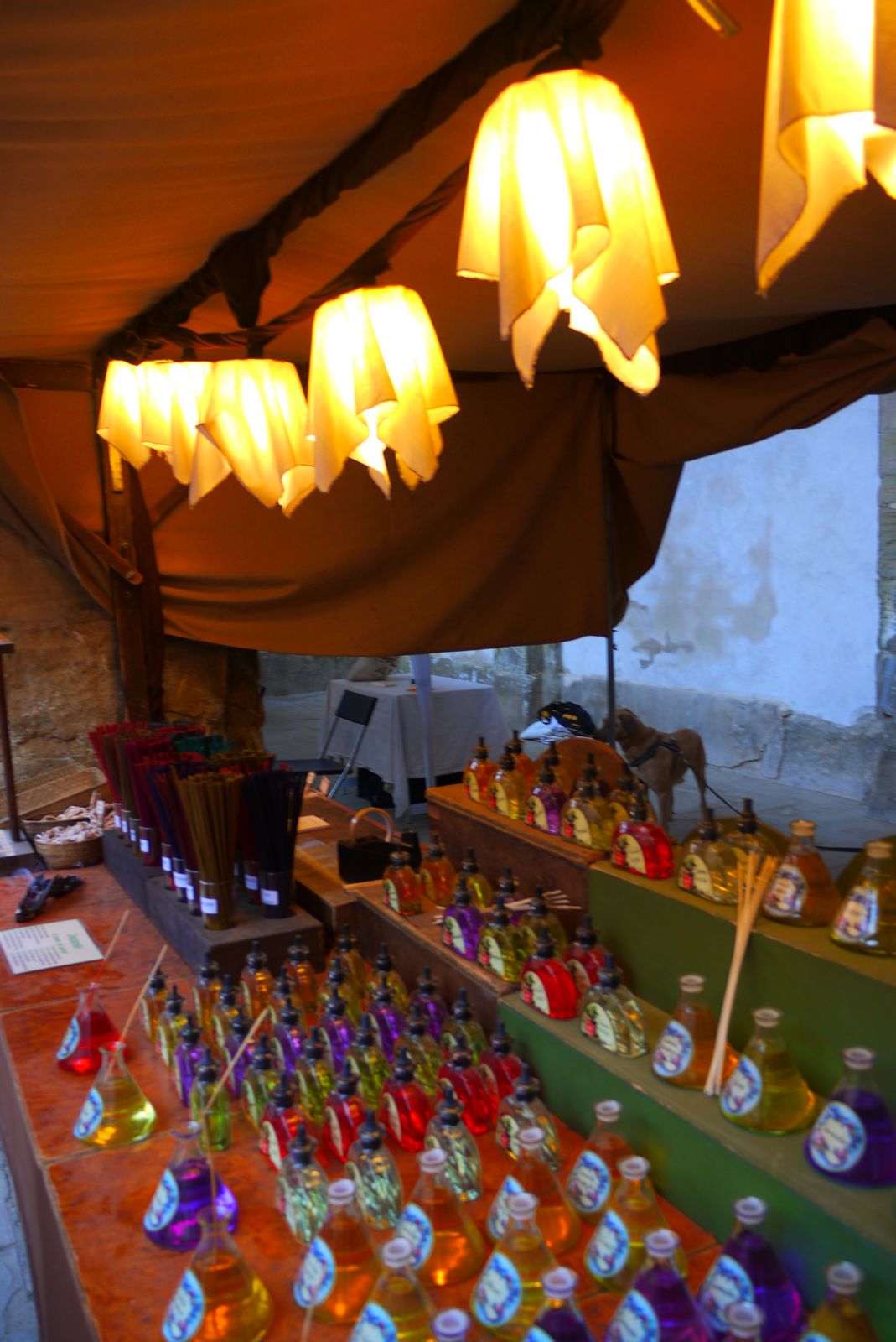 Un element decoratiu que cridava l’atenció ha estat els cartells de tots els Aquelarres. Penjats sota les arcades permetien, al anar seguint-los, descobrir els dissenys que s’han fet servir al llarg d’aquests anys.