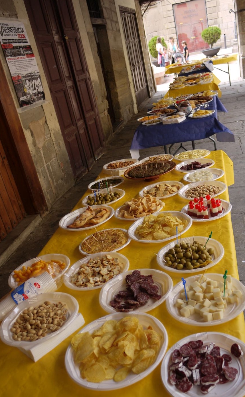 Unes taules plenes de menjar convidaven a fer un tastet de celebració.