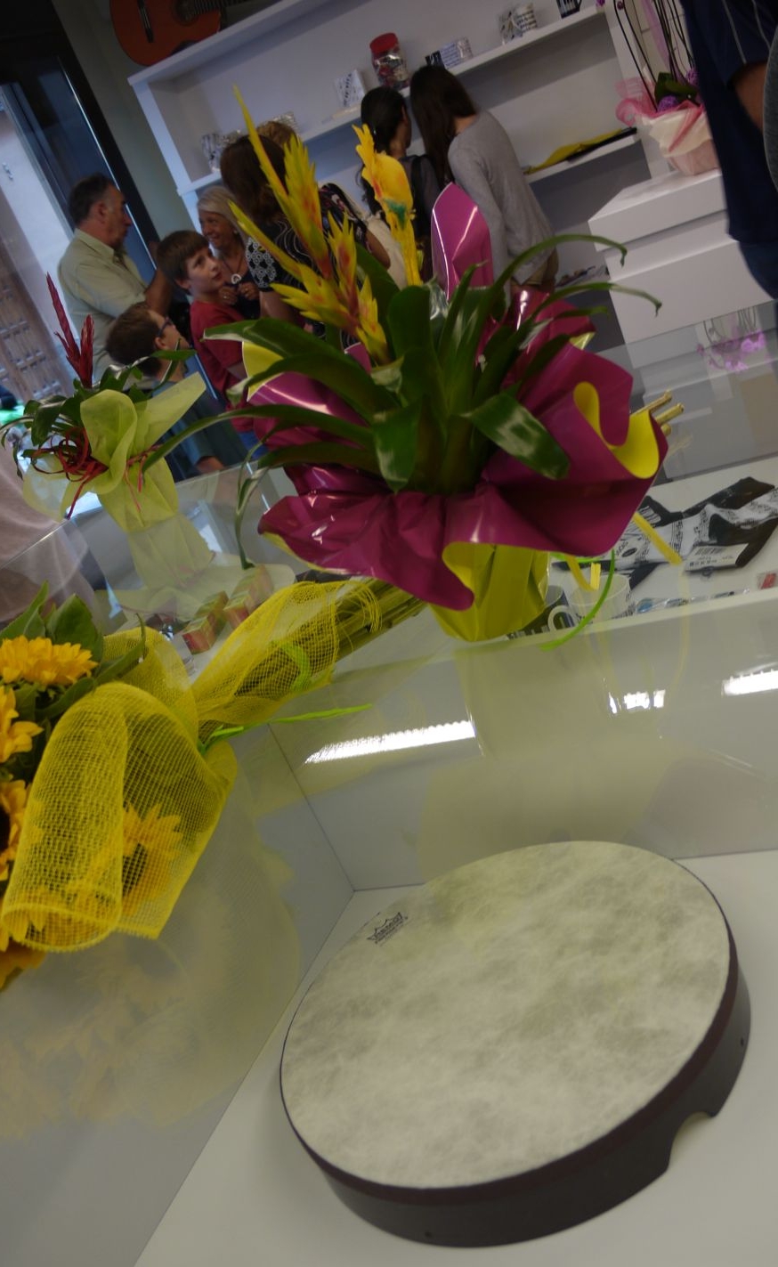 Centres de flors donaven el contrapunt als prestatges i vitrines on hi havia tota classe d’objectes relacionats amb la música.