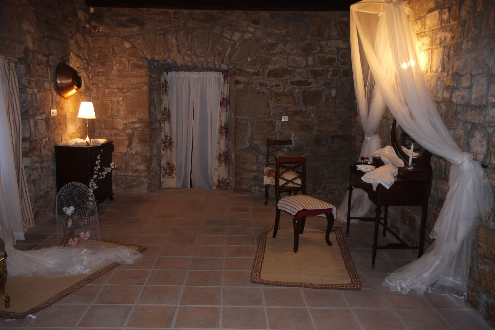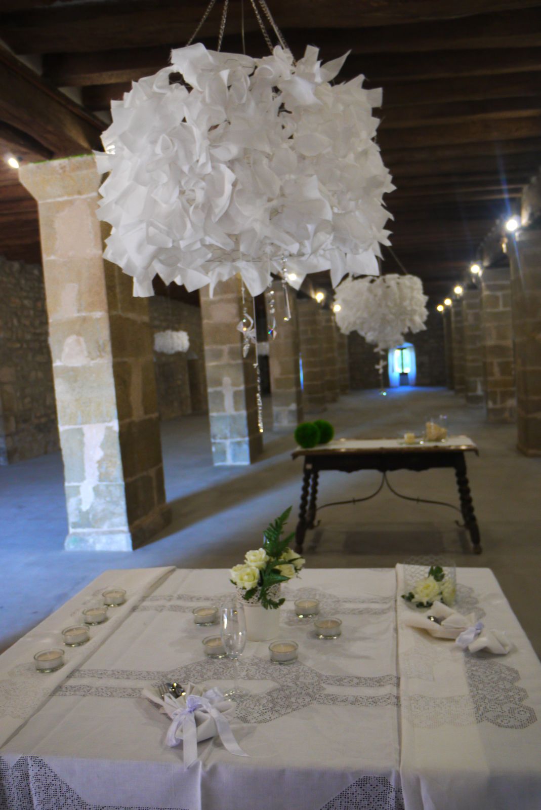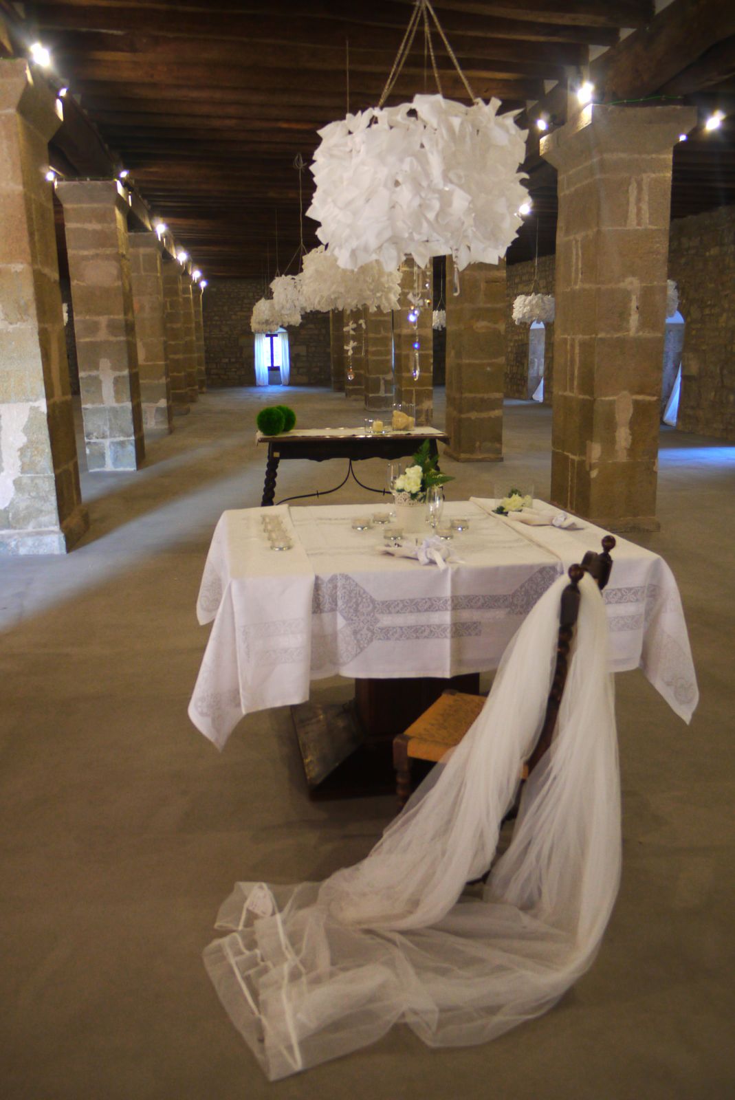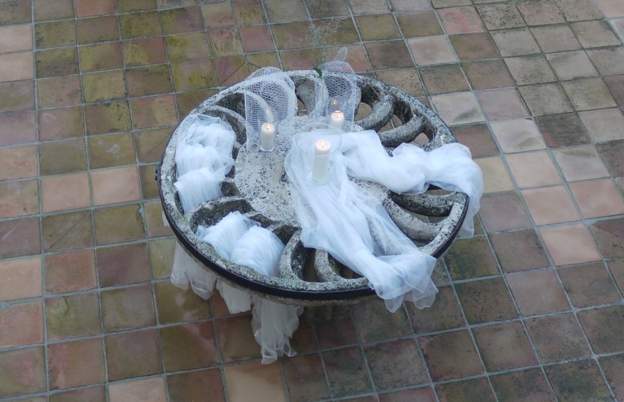 Espectaculars peces de pedra, rescatades de l’oblit, es podien admirar tot i embellint places, racons o indrets del jardí. Va ser una sorpresa veure la incorporació d’aquests detalls decoratius: tuls, espelmes…que el dia de la inauguració encara no hi eren. Aquests tocs posats amb gust, ajudaven a sofisticar uns estris i uns racons que quedaven eteris. Envoltats de núvols de tul i altres elements decoratius, el resultat estètic donava peu a pensar que darrera d’aquest saber fer hi havia una bona mà…
