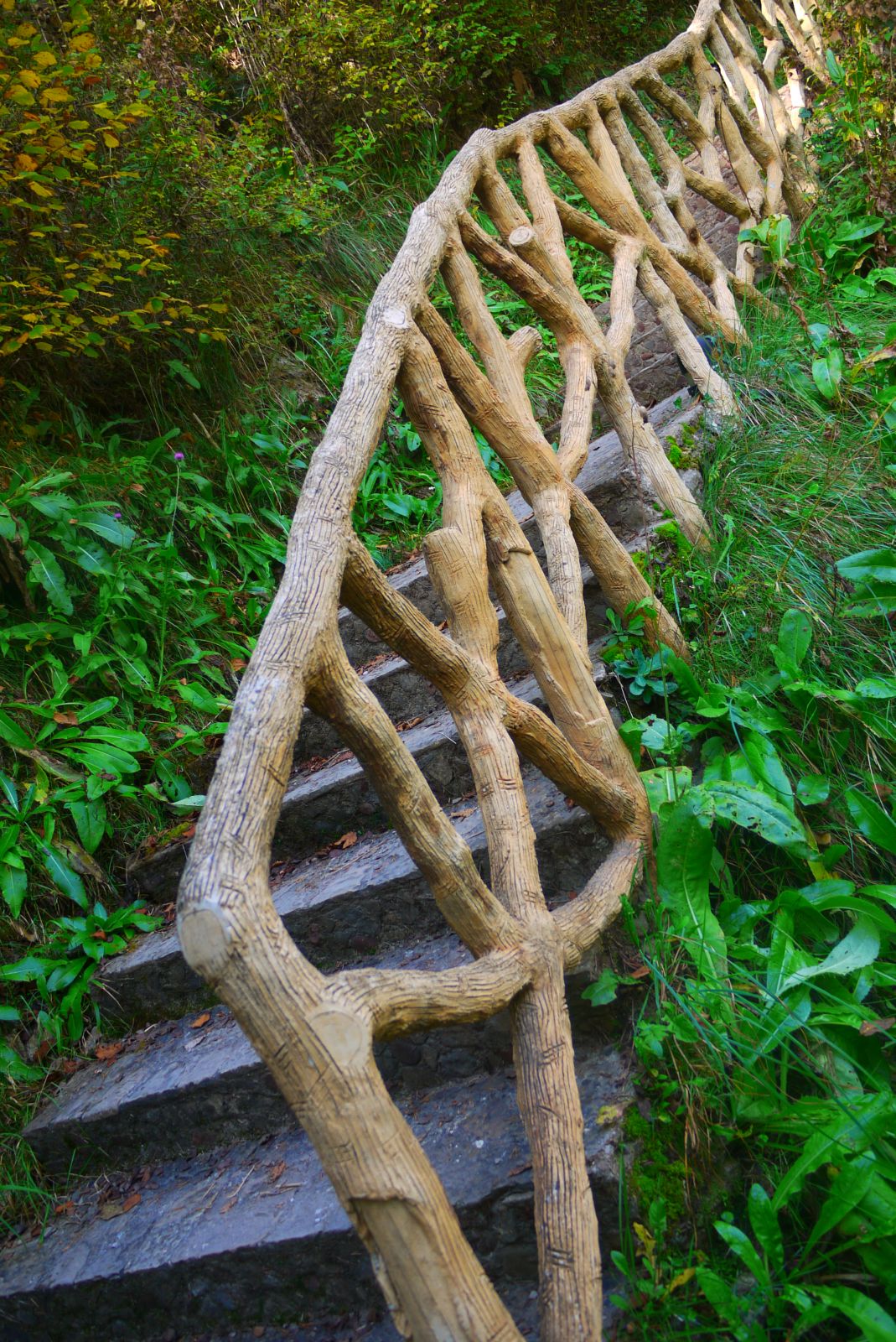 Una preciosa barana que copia la natura amb aquest lligam de branques que ofereixen un bon suport al visitant.