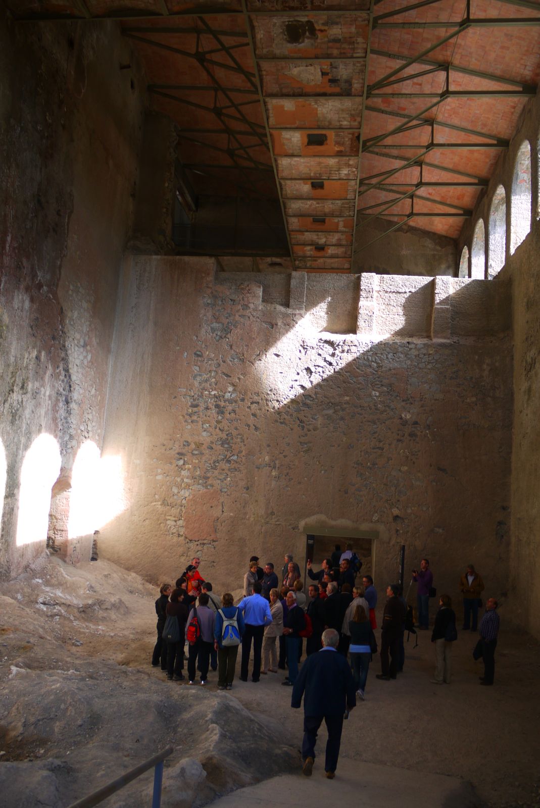 Després de veure un audiovisual sobre el treball a la fàbrica fem un passeig pels grans espais industrials que encara resten d’aquest vast complex. Observeu la volta catalana del sostre, un dels grans atractius i encerts d’aquesta construcció.