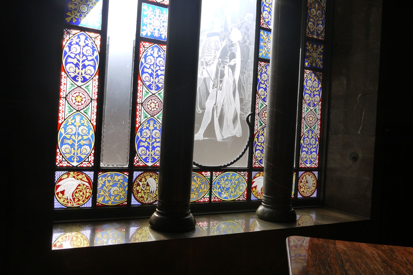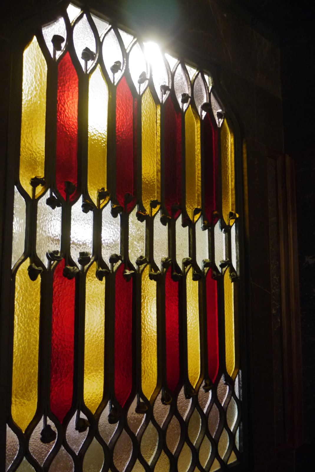 Gaudí sempre fidel al trencadís. Per tancar aquestes finestres aquí el va utilitzar fent servir trossos de vidre.