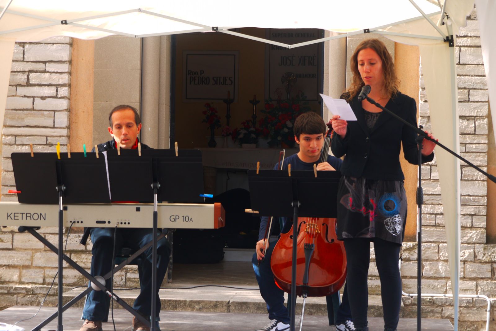 Peces musicals es van barrejant amb el recital que han preparat les germanes Gemma i Marta Pich, que fan un darrer repàs als poemes, mentre esperen el seu torn.