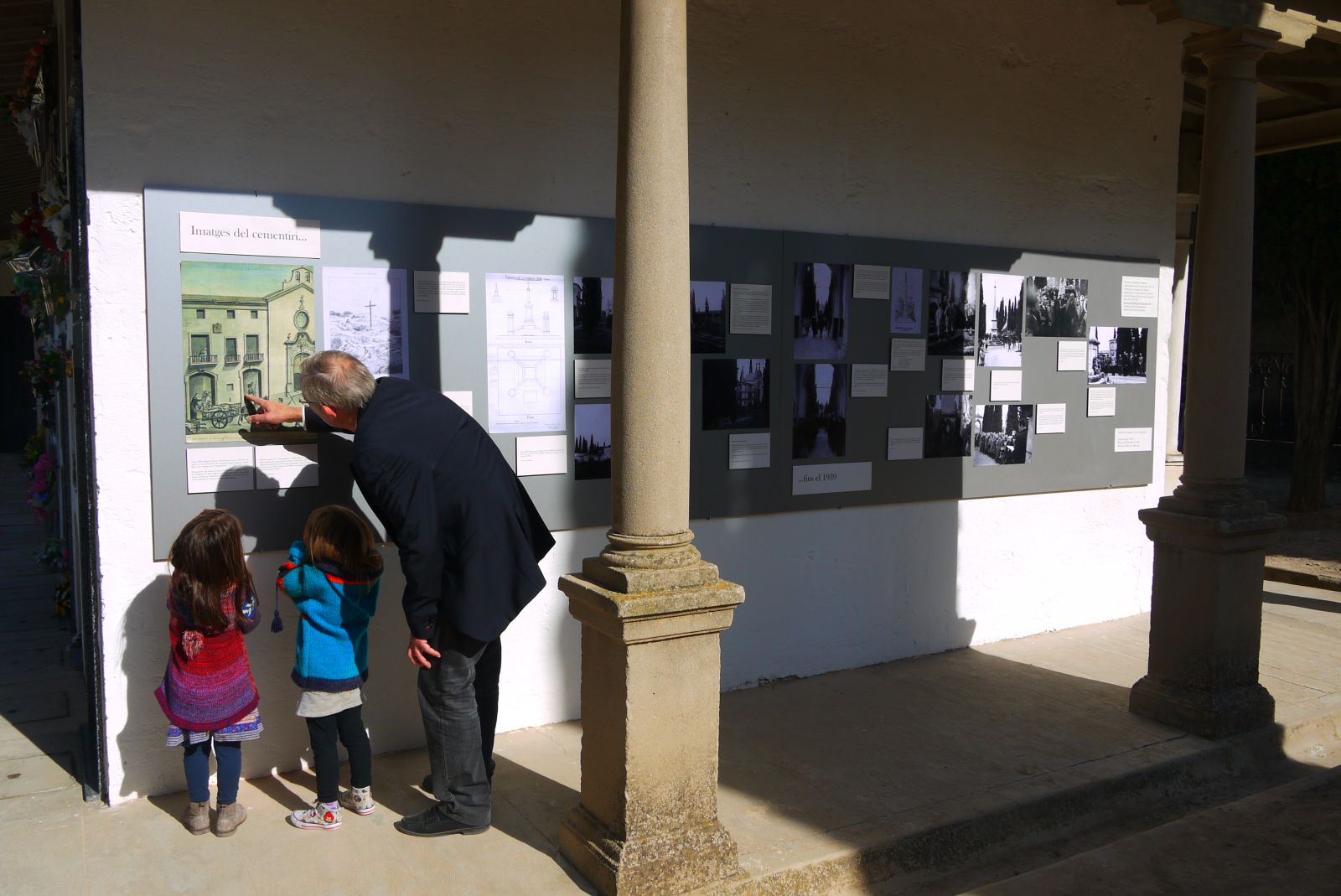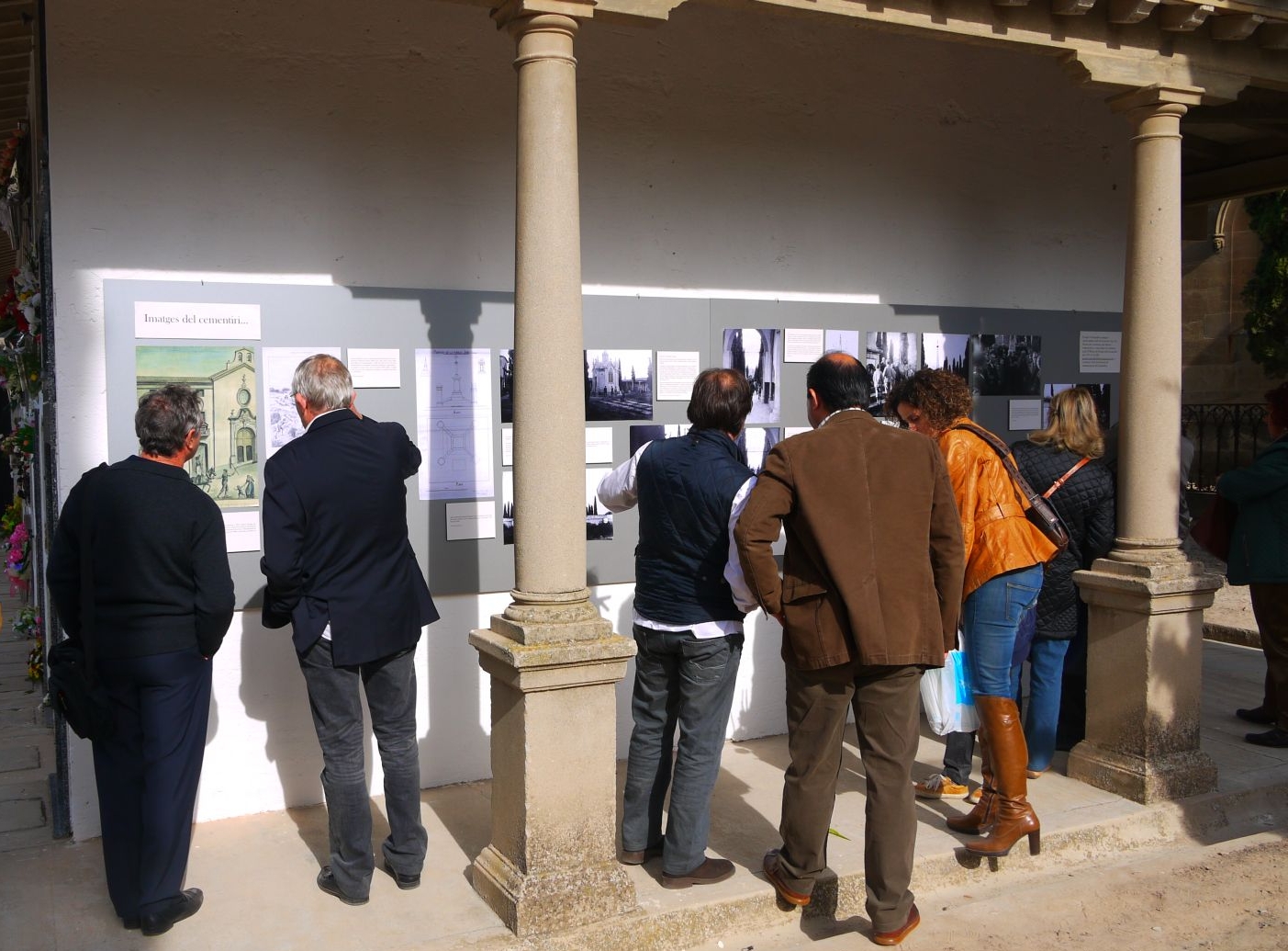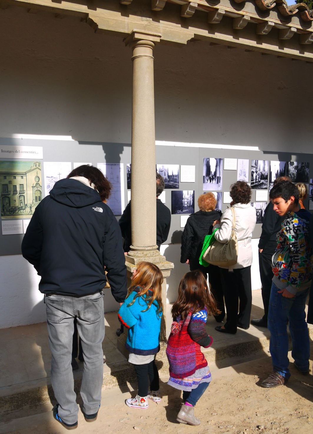 Els responsables del cementeri van pensar que, a la paret que hi ha davant la mostra de làpides, seria interessant poder-hi posar una exposició de fotografies antigues del propi cementiri. Ens van demanar si volíem col·laborar a tirar endavant aquest projecte i Ramon Mª Razquin, Mª Rosa Villarroya i jo mateixa hem estat els responsables d’executar-lo. Hi ha intenció de continuar el proper any i, per tant, tot i que tenim força material, és important que tothom que disposi de fotografies del cementiri les pugui cedir per tal d’escanejar-les.