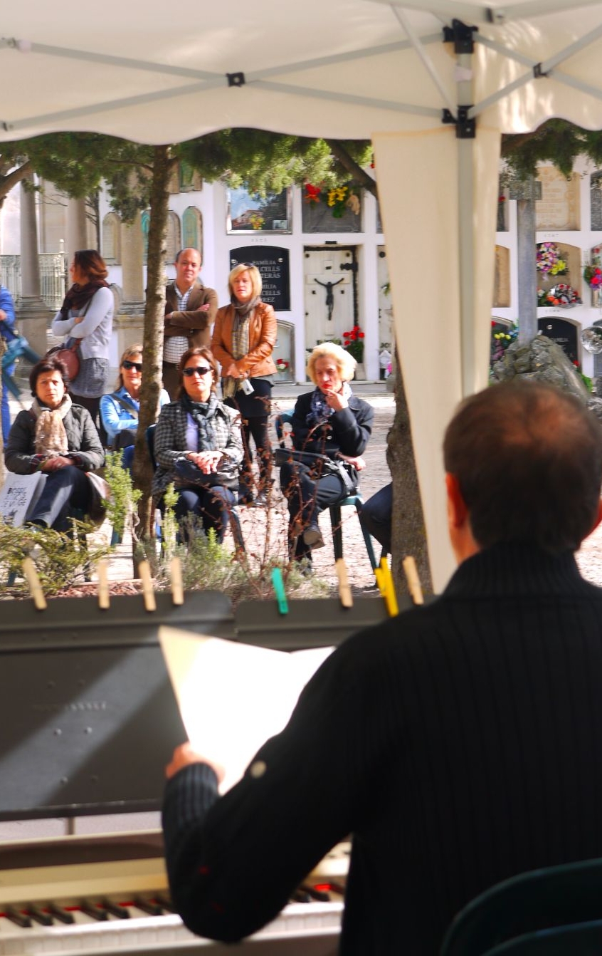 Al cartell ja s’anunciava amb detall cadascuna de les activitats. El projecte d’escoltar música en directe, a càrrec de professors i alumnes del Conservatori de Música, ja fa un temps que es va endegar i continua sent una proposta magnífica. La mostra de làpides antigues que l’any passat es va presentar, al afegir-n’hi cinc peces més, ha quedat completa. Les activitats que s’han encetat aquest any han estat l’exposició de fotografies i gravats històrics del propi cementiri, un recital de poemes dedicat a Salvador Espriu, en motiu de la celebació del centenari del seu naixement, i…