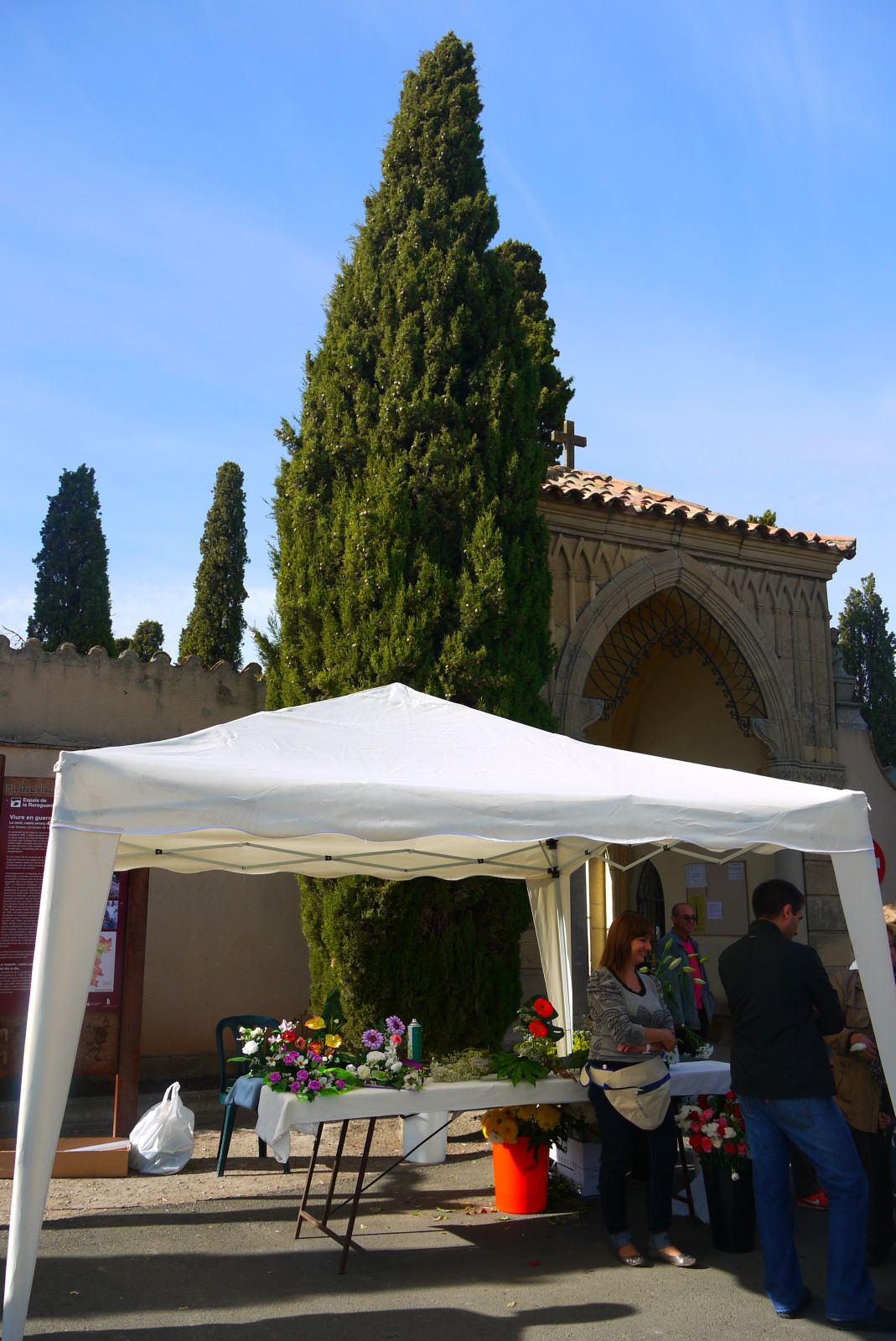 … el muntatge d’una parada de flors a l’entrada del cementiri. Una idea molt bona i que molta gent ha aprofitat per acabar d’arrodonir la seva compra. Si tingués continuïtat els visitants, especialment els de fóra Cervera, que venen carregats de flors, aprofitarien l’avinentesa de tenir-les a peu de cementiri.