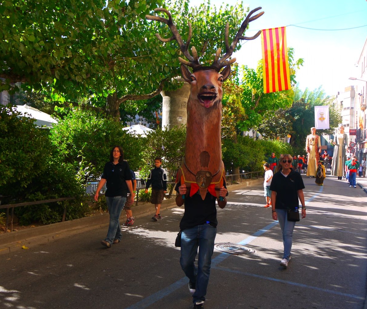 El Cèrvol Tibau, acompanyat dels Bombollers de Cervera.