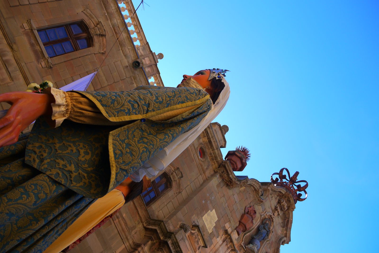 Un contrastat perfil de lo Carranco Bilandó mentre espera l’acabament de l’ofici, per tornar a formar part del Seguici, en el camí de retorn cap a la Paeria.