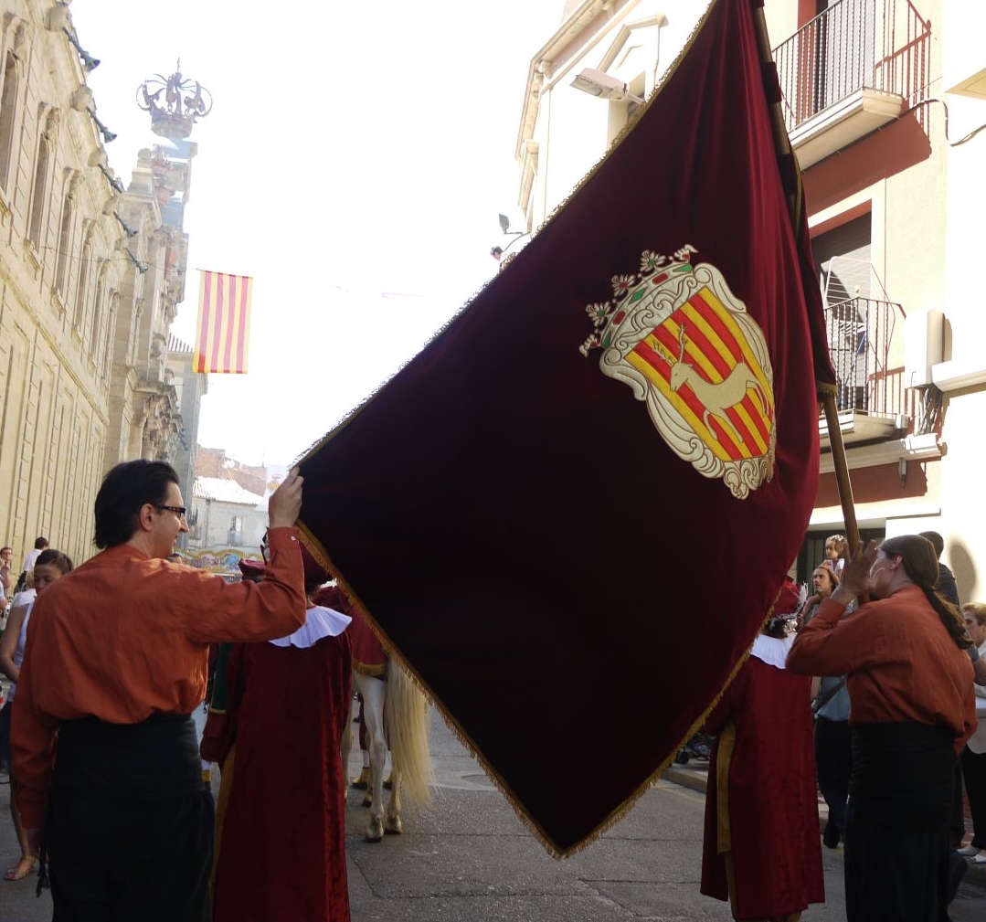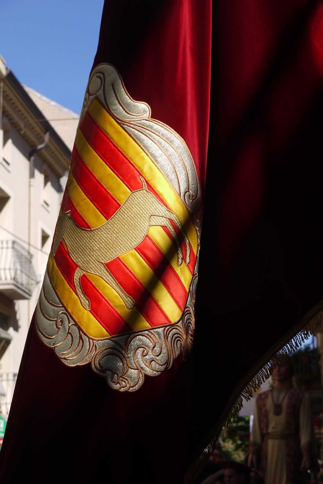 Imatges de la magnífica i vistosa Bandera de la Ciutat que aquest any portàven els integrants de la Confraria del Seny Major.
