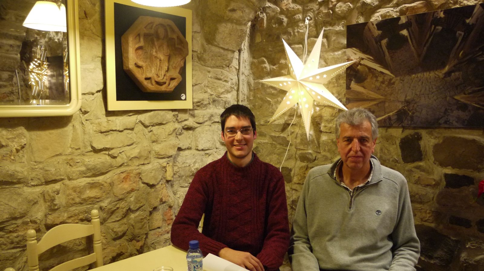 Aquí amb Ramon Aldomà, compartint generacions diferents, però amb una mateixa estima pel que fa a tot el que gira al voltant del Campanar de Cervera.