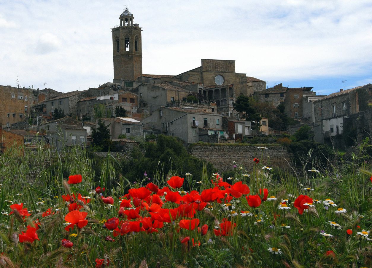 Les flors de davant de casa seva donen color al casc vell de Cervera al mes de juliol.