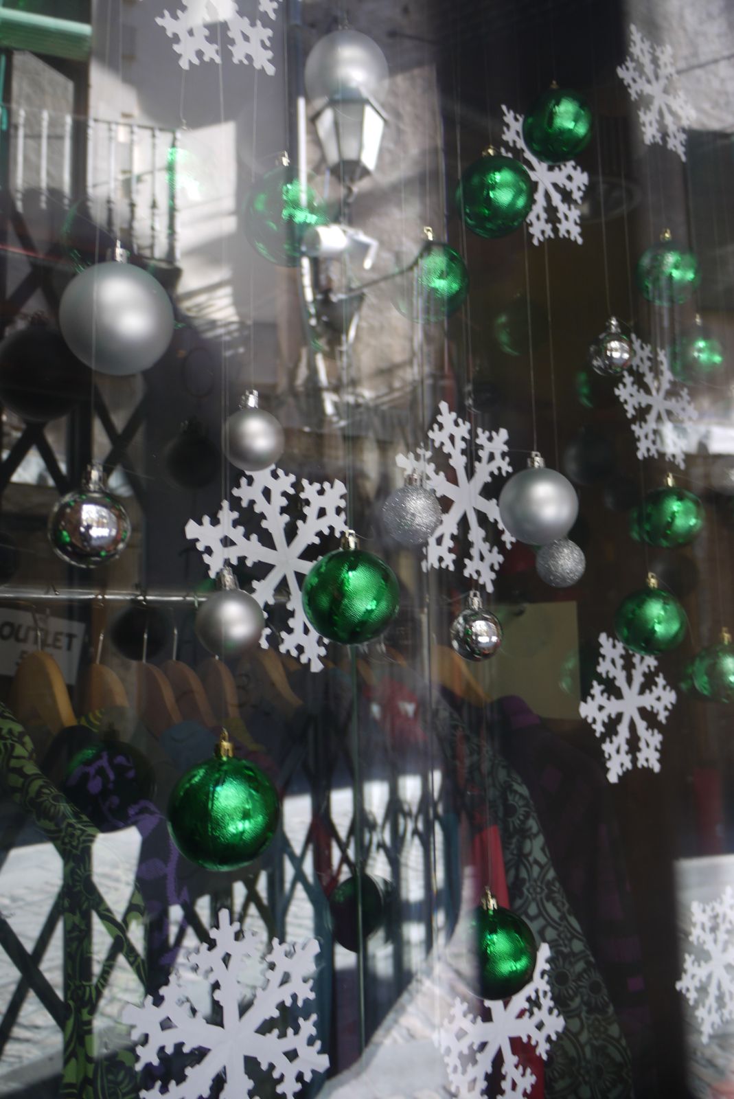 La Bea de Les Voltes sempre ens té acostumats a veure coses creades des de la imaginació i el bon saber fer d’una artista. L’aparador que va fer aquesta tardor, amb la pluja que regalimava pels vidres, era preciós. Ara ens barreja els cristalls de neu amb unes boles color de molsa.