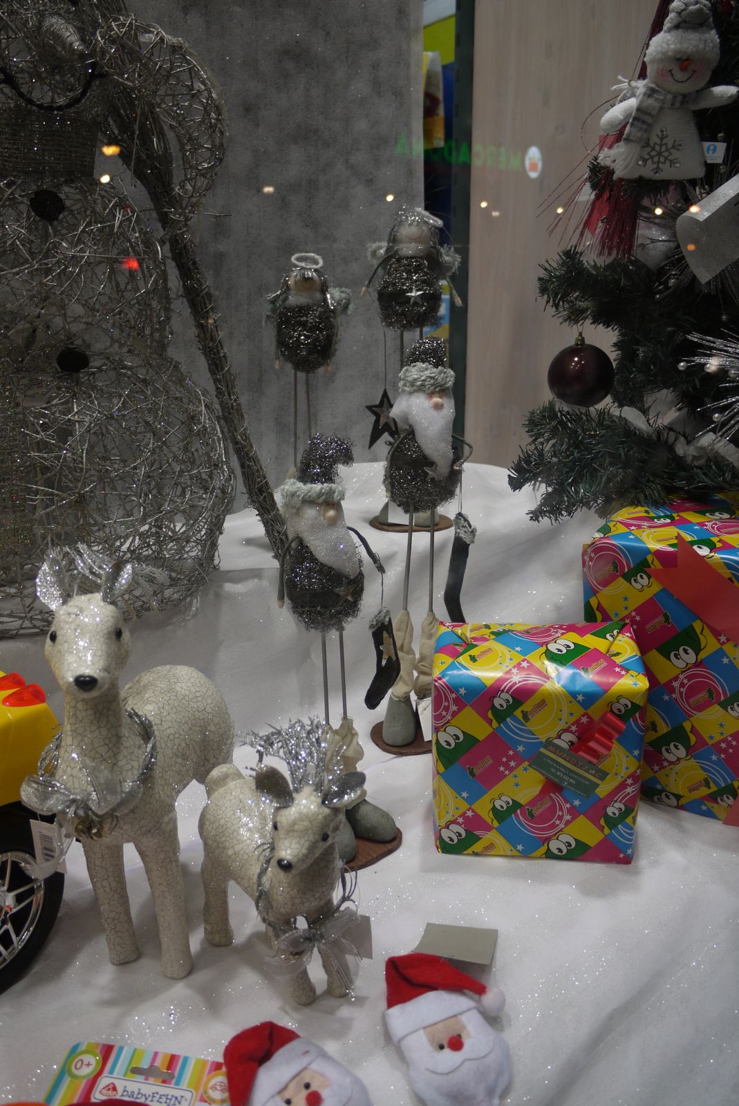 L’aparador de Mundijoc és una festa amb la quantitat de joguines que exhibeix! Aquí només vull recollir l’ambientació pel que fa a la decoració nadalenca que la trobem en aquest arbre molt ben posat i aquests elements platejats que l’acompanyen.