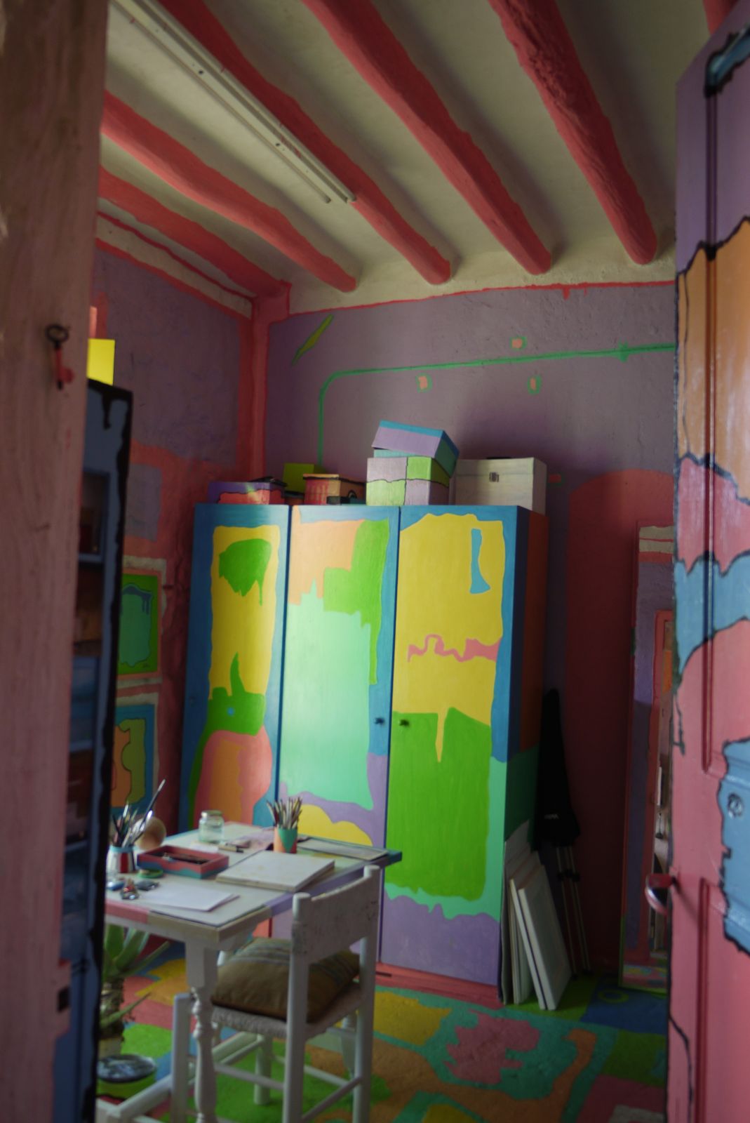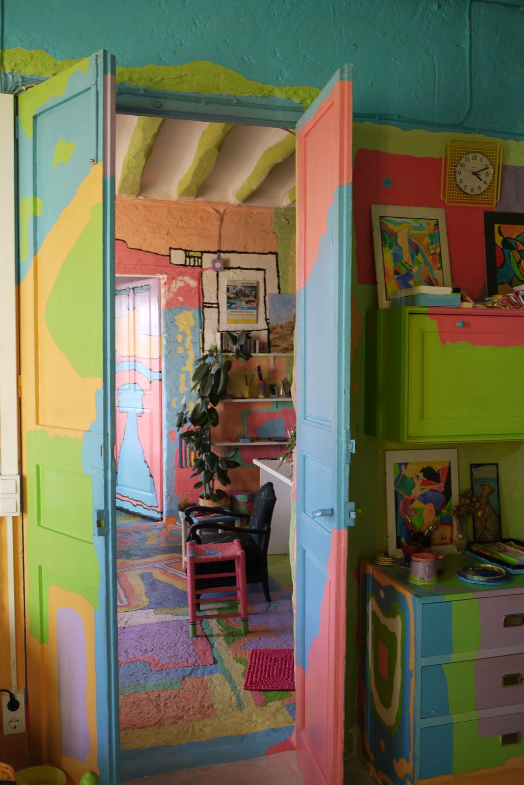Seguim amb la visita que estàvem fent a la casa del pintor Cesc Font. El post de dilluns va tenir moltes visites i amb aquest d’avui dóno per tancada la passejada per aquest habitatge tan especial. Tot i que falten veure moltíssims detalls d’estris que ell ha renovat amb la seva manera de transformar-los afegint-hi color, així com també molts altres racons d’aquest espai màgic us recomano que si voleu veure tota la seva obra podeu entrar a la web:http://www.ffontraich.com/