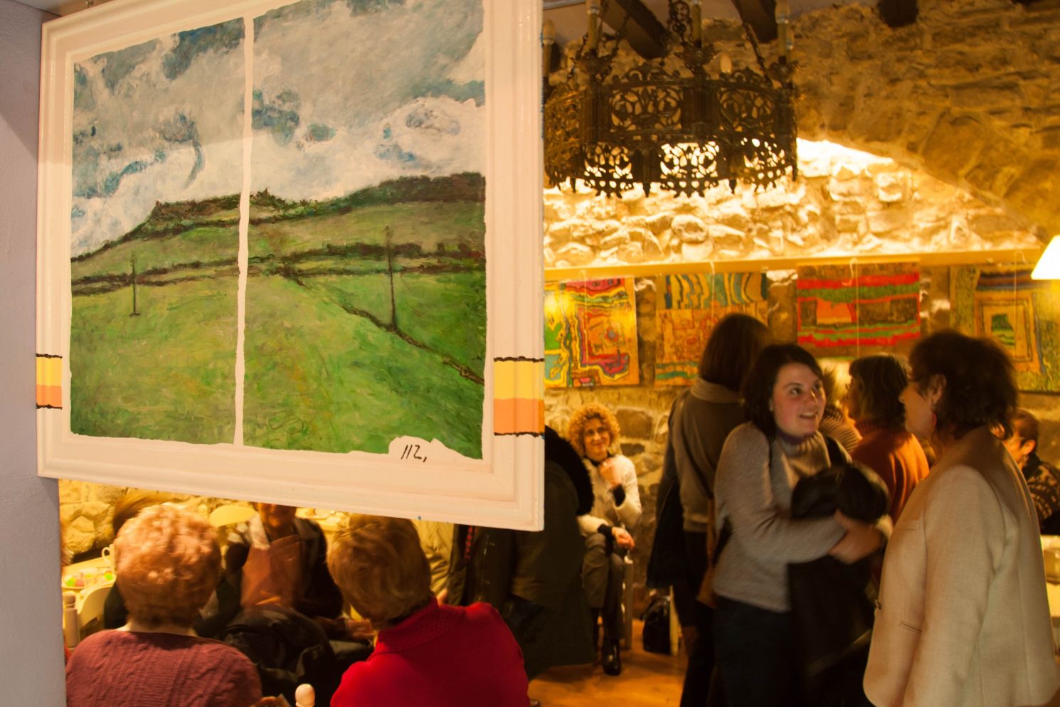 Ja acabada la inauguració, els darrers en marxar, sense pressa, s’acomiaden tot i comentant algun detall. Aquí es veu molt bé com queda marcat el canvi d’estil, amb la disposició ben especial d’aquest quadre, que ens condueix des del camí del figuratiu a l’abstracte.
