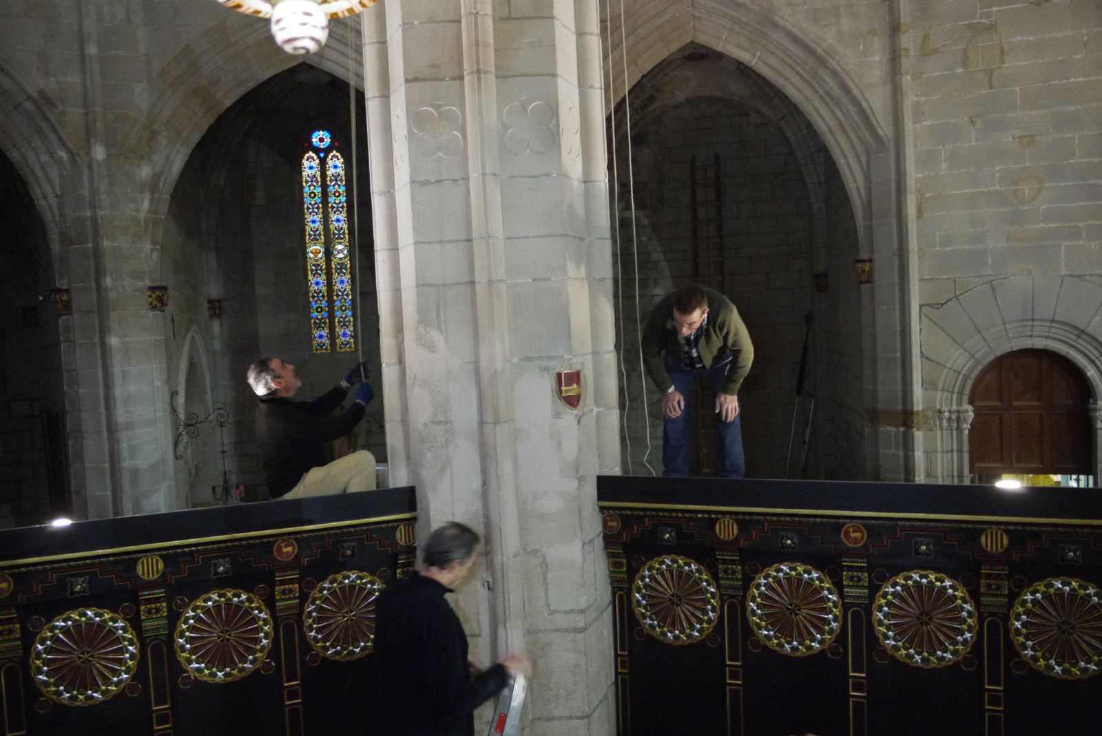 Ara venen els difícils, els que estan a la part lateral i de darrera de l’altar. Cal enfilar-se amb escales per arribar-hi. En aquestes columnes hi ha més dificultats per fer-ho!