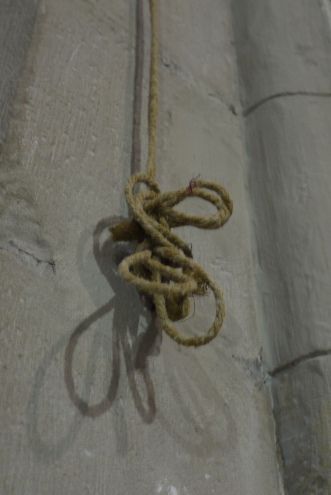 Una fotografia ben sosa, vaja que fa una mica de pena però que cal observar per saber el que signifiquen aquests nusos que veurem tot l’any a les columnes de Santa Maria. No sé si seguieuxen un criteri per fer-los, el que si que crec és que no es deslligaran.