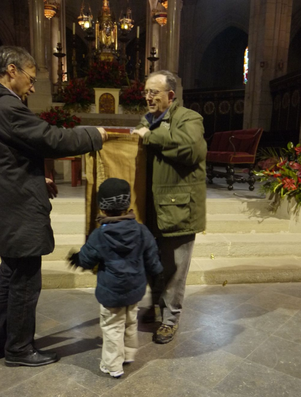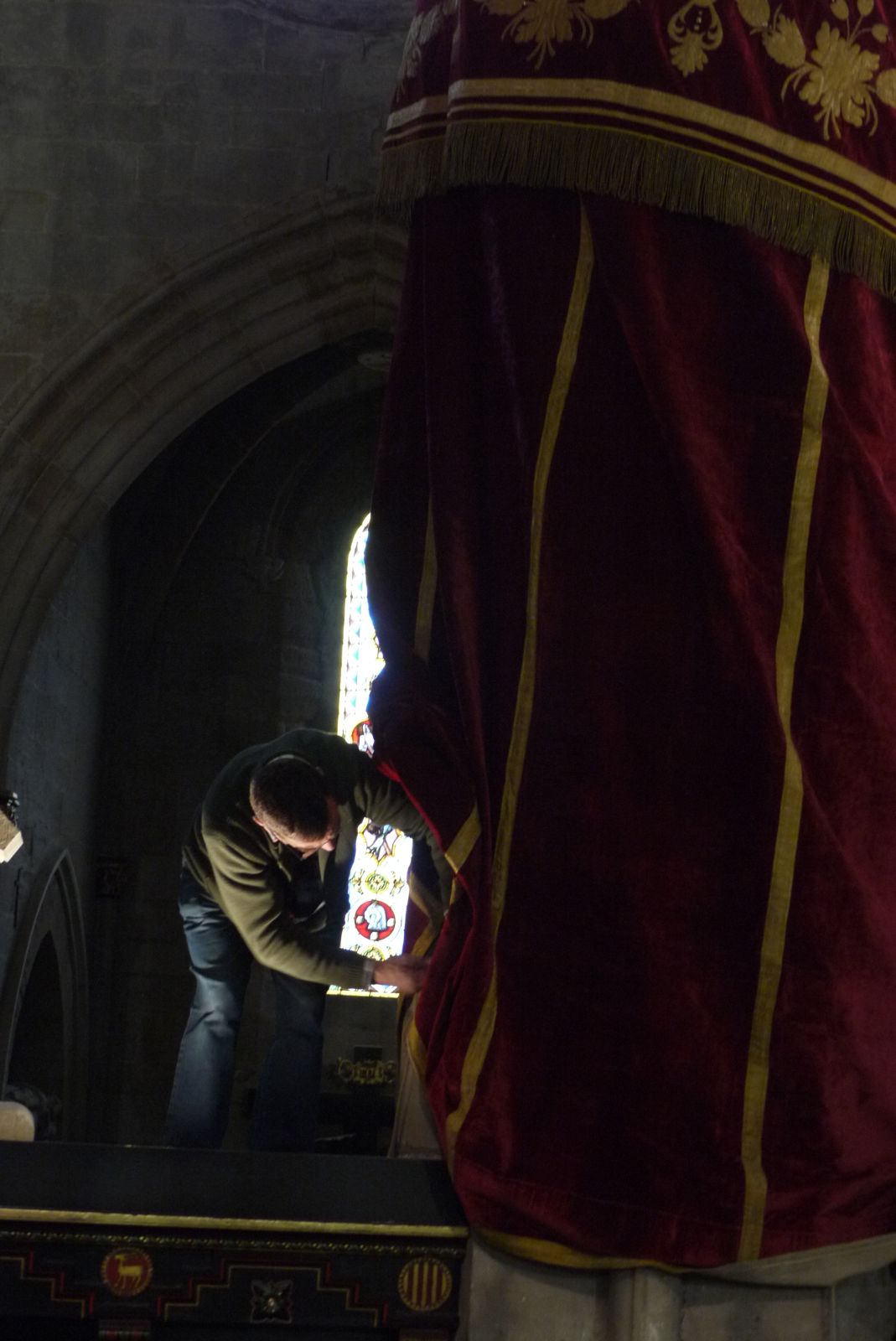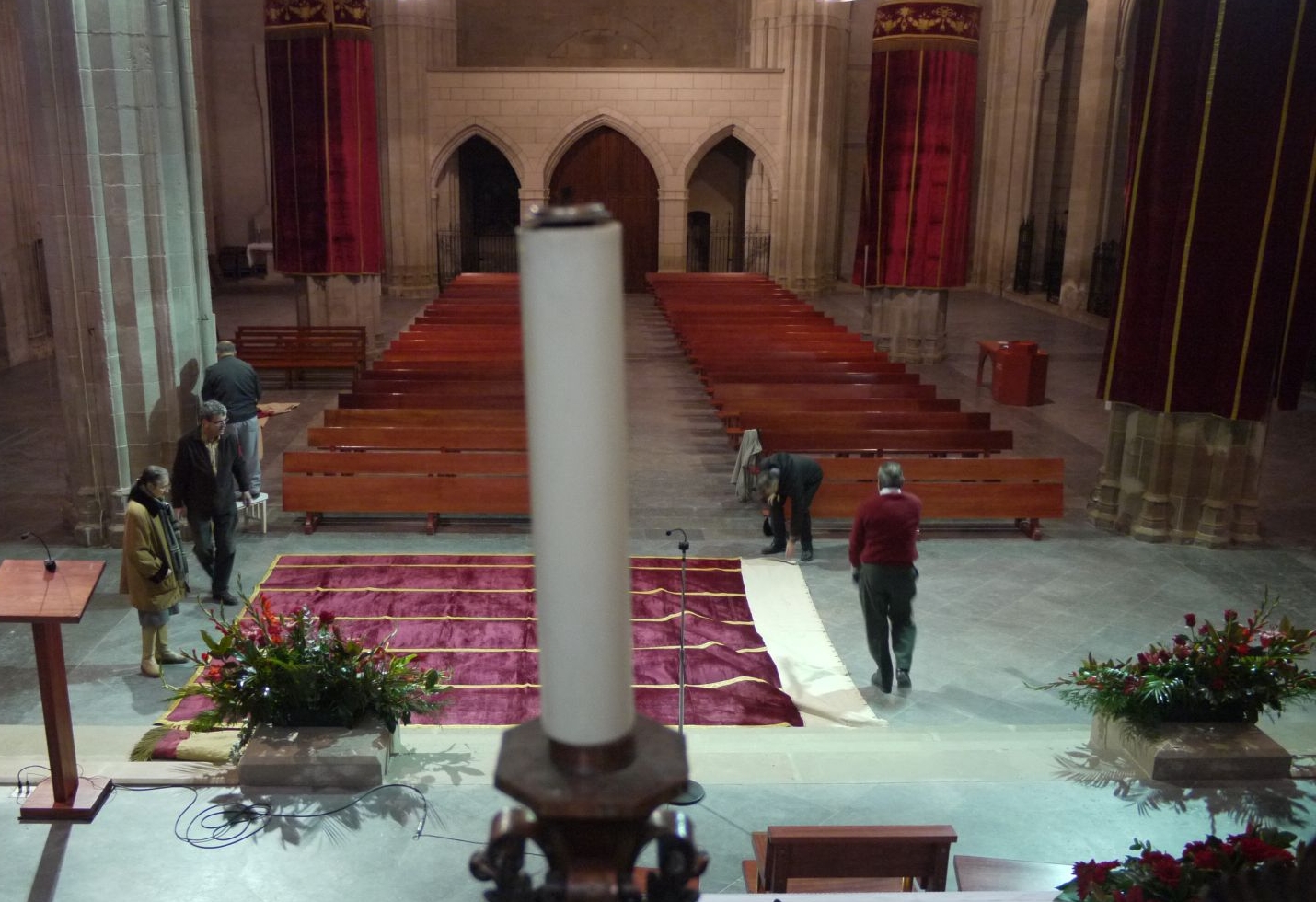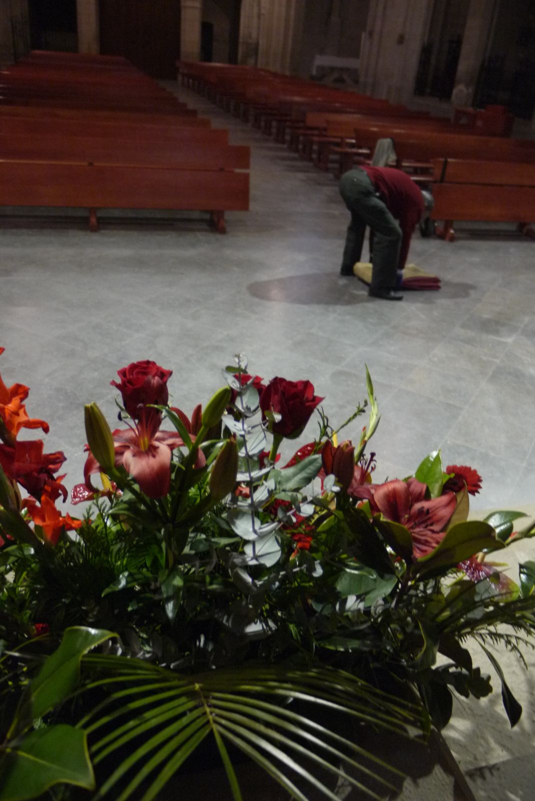 Difícil que la foto quedi nítida amb el pas lleuger del que porta la meitat de l’estri cap a la sagristia per guardar-lo.