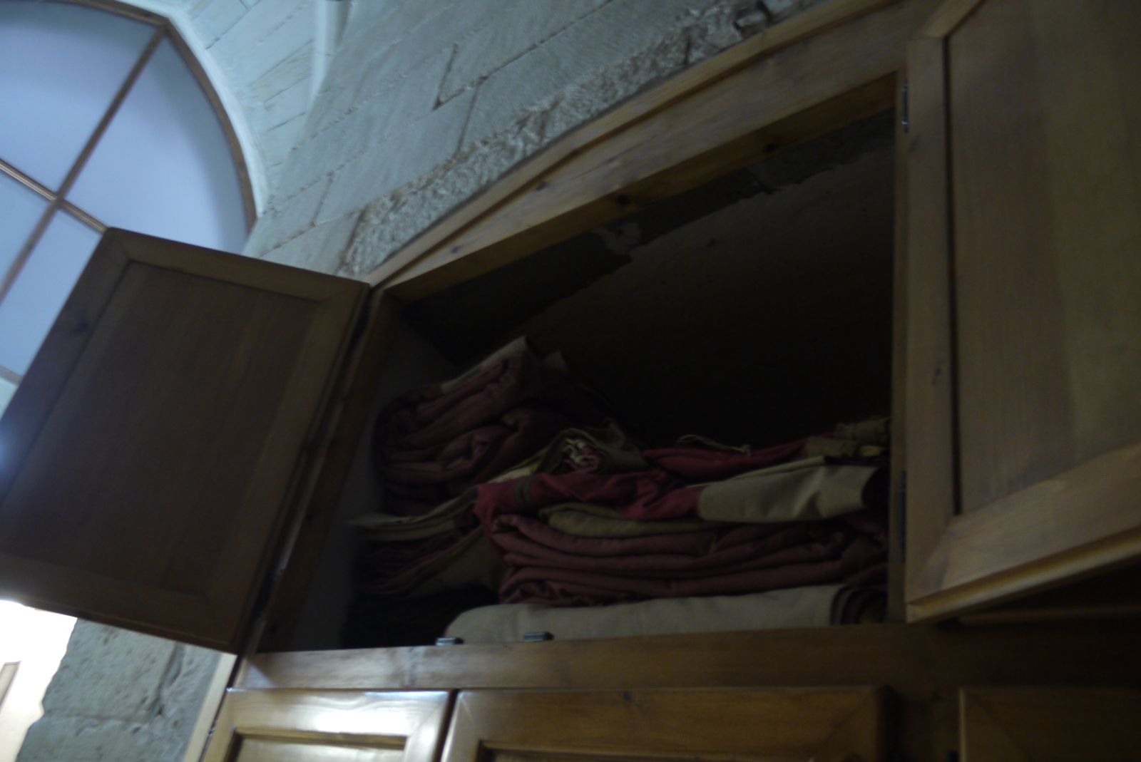 L’armari ja està ple i les portes es tancaran. Velluts, passamaneria, folres i brodats reposaran tot un any en aquest amagatall.