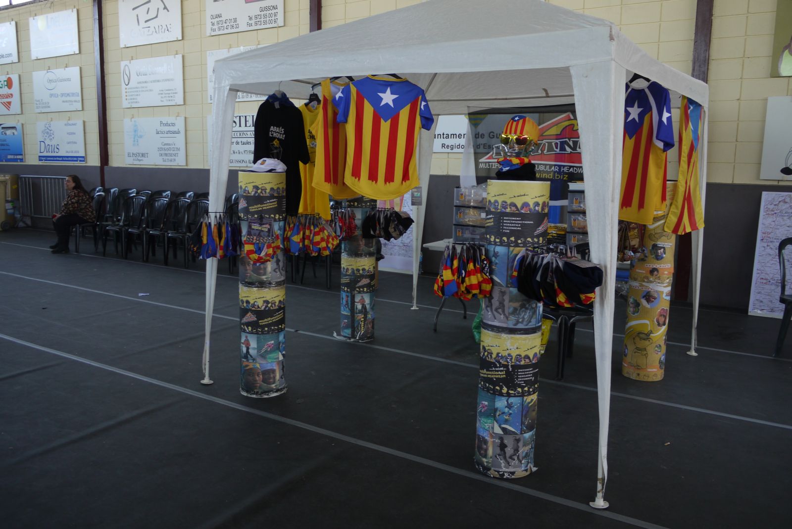 La retolació i la presentació de tot plegat impecable. Fixeu-vos en el detall d’aquest rètol de l’esquerra. I les voluntàries i voluntaris, impecables i preparats per l’allau de marxistes que de seguida començaran a arribar.