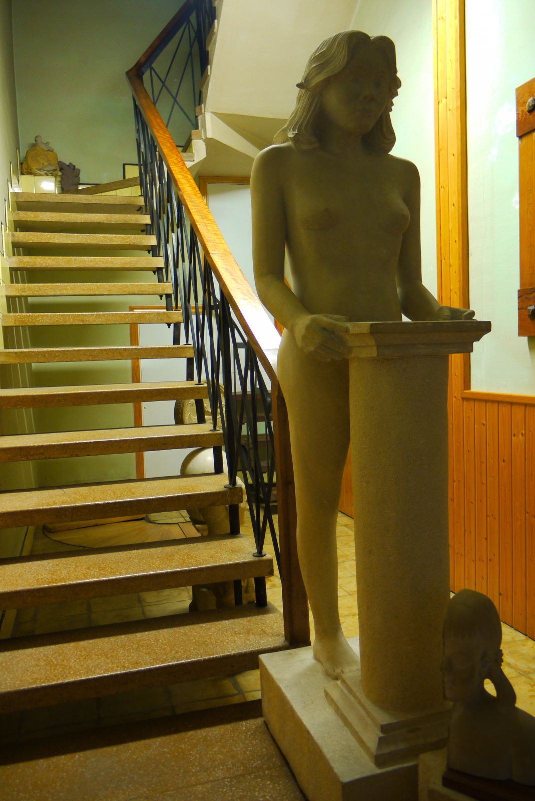 El nombrós grup de visitants es va quedar ben sorprés en entrar a la llar de Ramon: una magnífica escultura d’una jove ens rebia a l’inici de l’escala. Tot i que la pedra és un material una mica fred la imatge d’aquesta adolescent desprenia una gran calidesa. El seu esguard, quasi una nena, mostrava una serenitat i una placidesa molt evident.