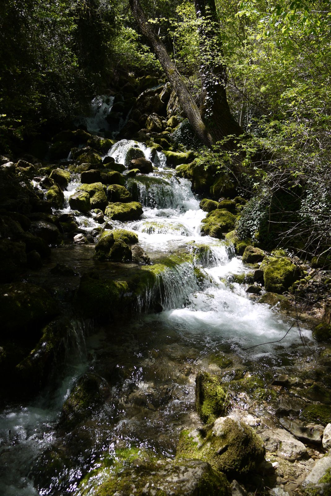 La quarta via, molt important, cal buscar-la muntanya amunt en aquesta mena de rierol d’aigües esvalotades que comença enmig d’un conjunt de roques.
