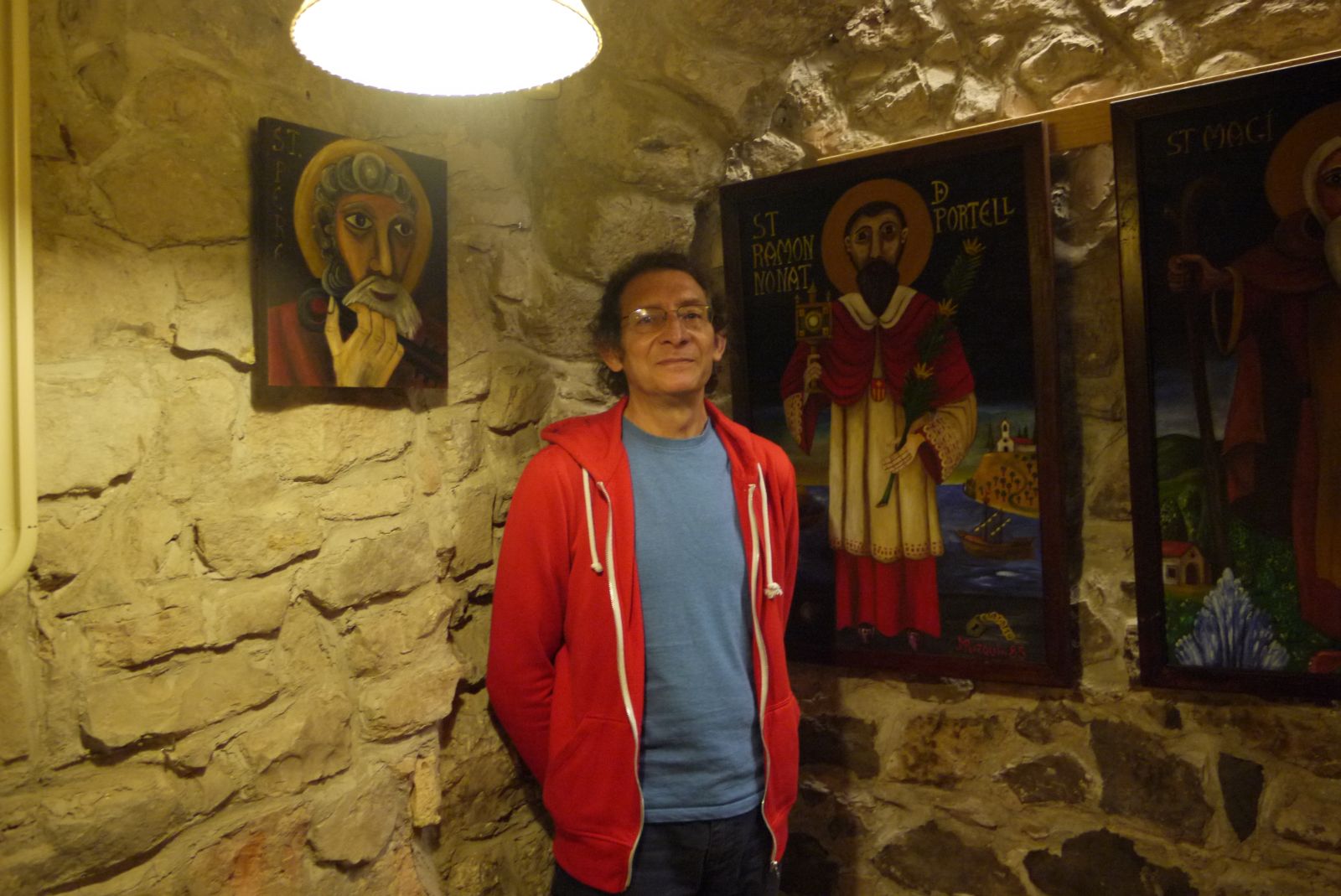 Ramon posa a “el Campanar” a l’acabament de l’acte al costat d’unes pintures del seu oncle Josep Mª.