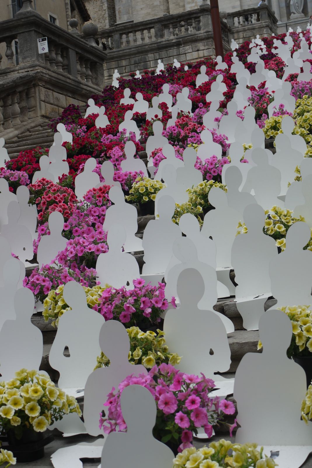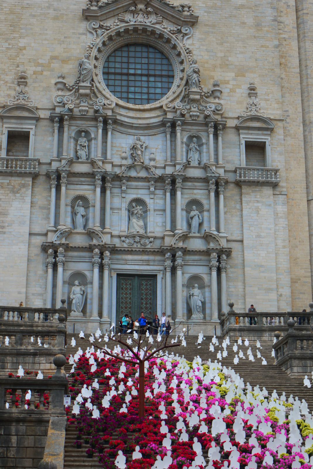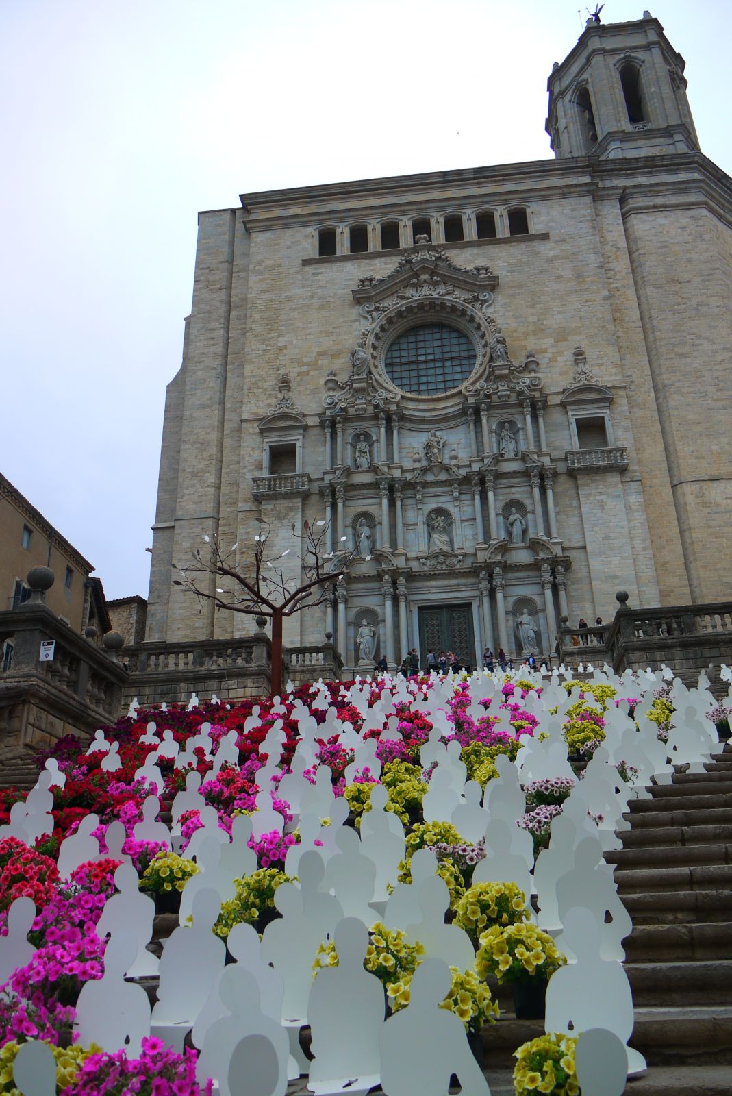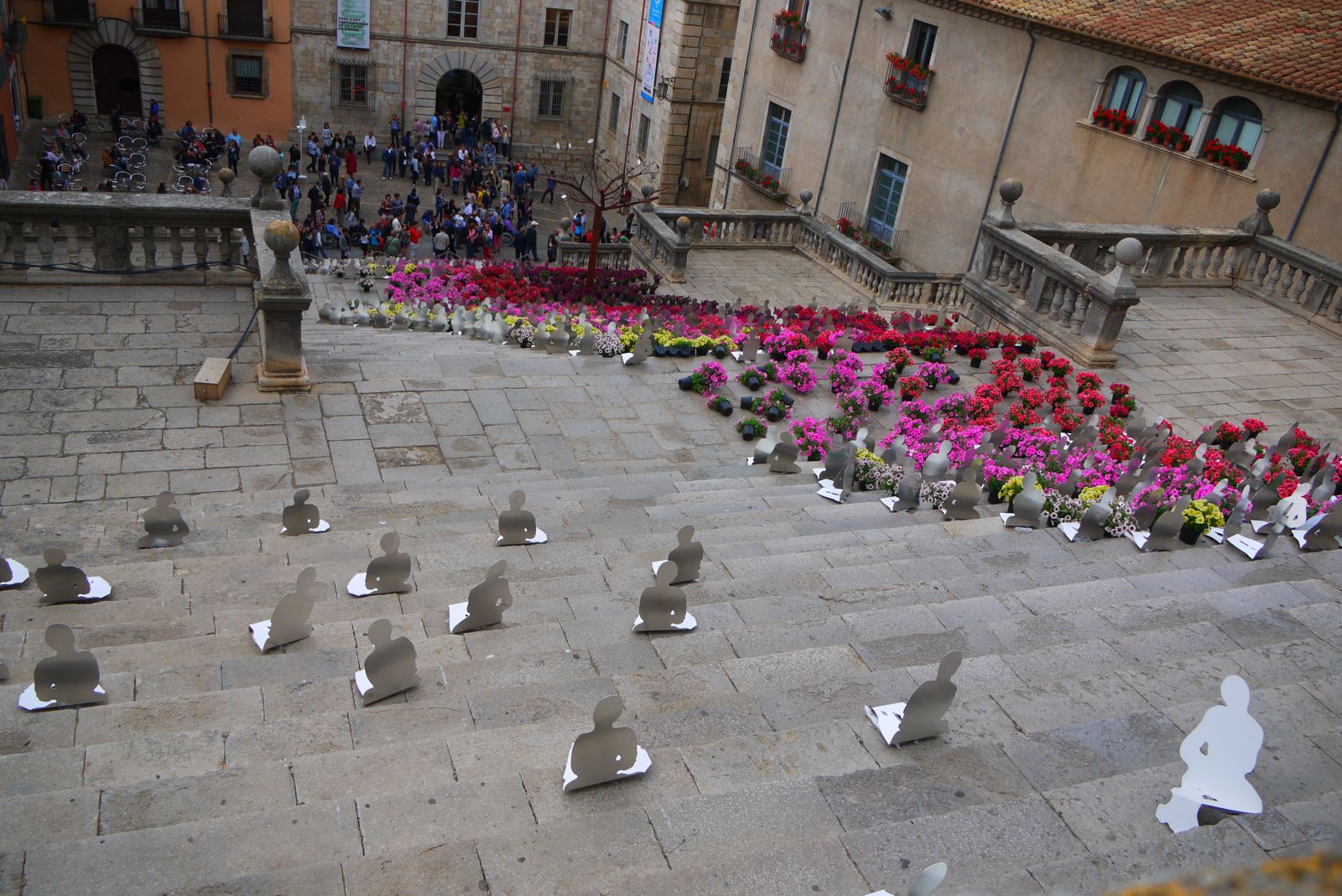 Un dels espais més emblemàtics de Girona, l’escala que et puja o et baixa de la catedral, aquest any lluïa un muntatge dedicat a la persona que va encetar aquesta activitat que, amb els anys, està donant tan prestigi a la ciutat: Maria Cobarsí.
