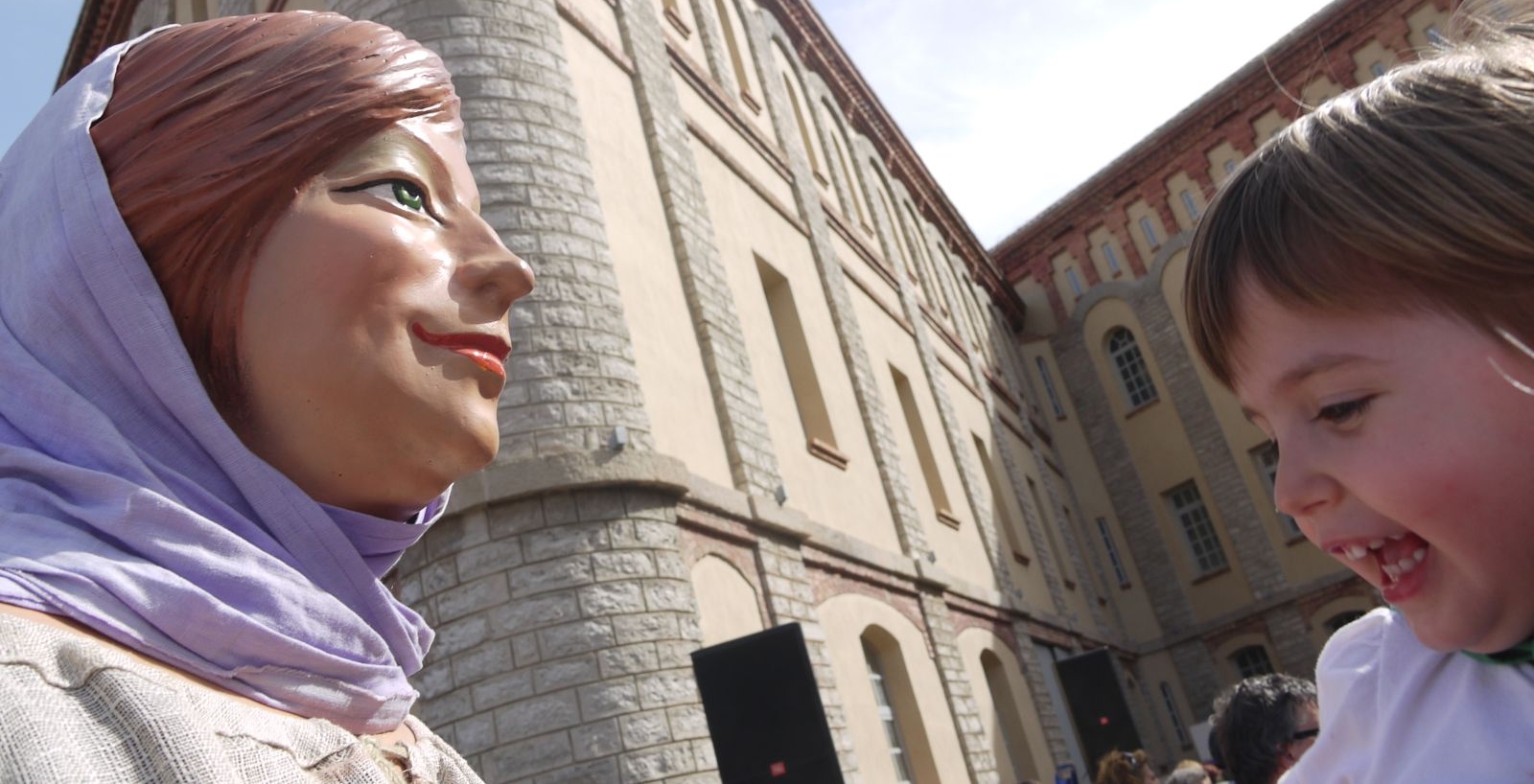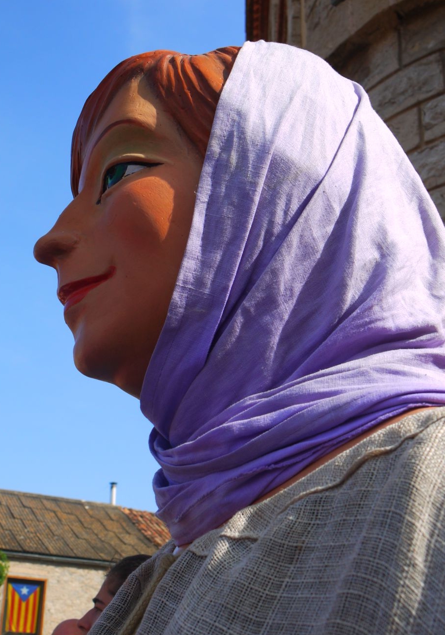La nostra gegantona té un bon feeling amb els més menuts. Aquí veiem aquesta nena enjogassada amb la Magdalena.
