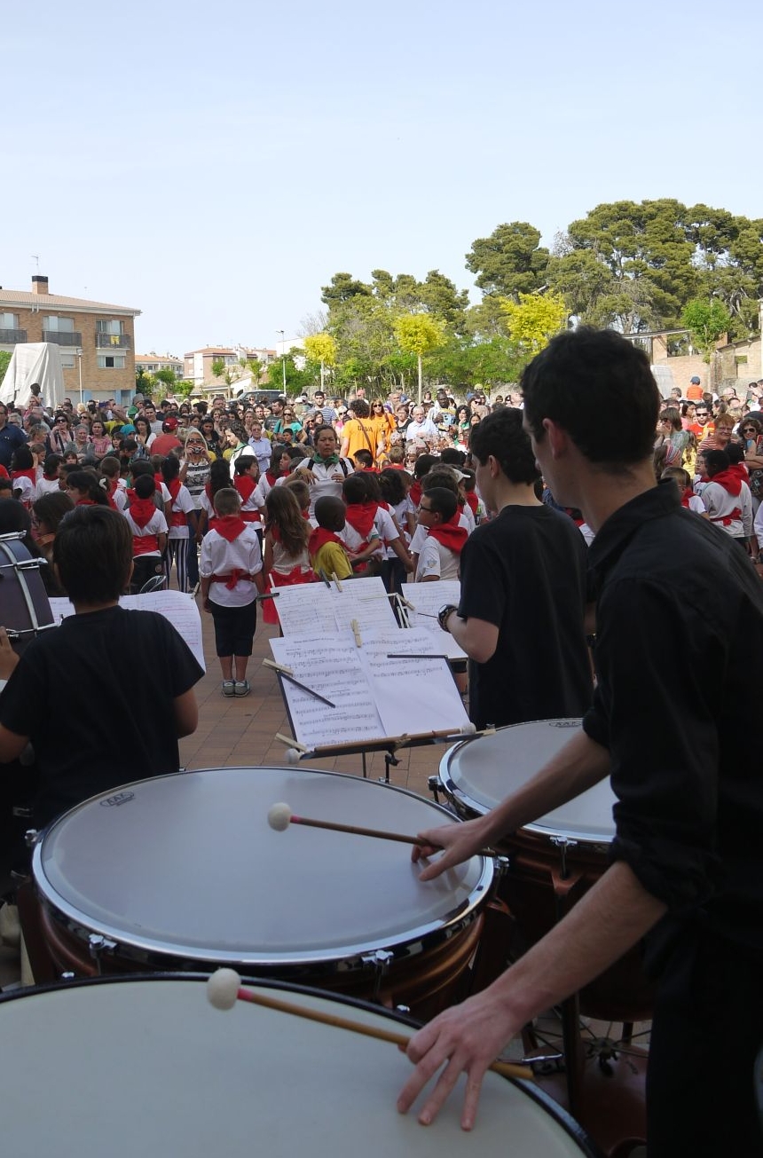 El grup de Cant Coral del Conservatori, la coral Infantil Nova Cervera i l’orquestra Andreví assajaven l’himne… mentre els infants estaven esperant que el grup de Grallers dels Geganters comences a tocar pels alumnes de primer i segon que van participar a la festa ballant.