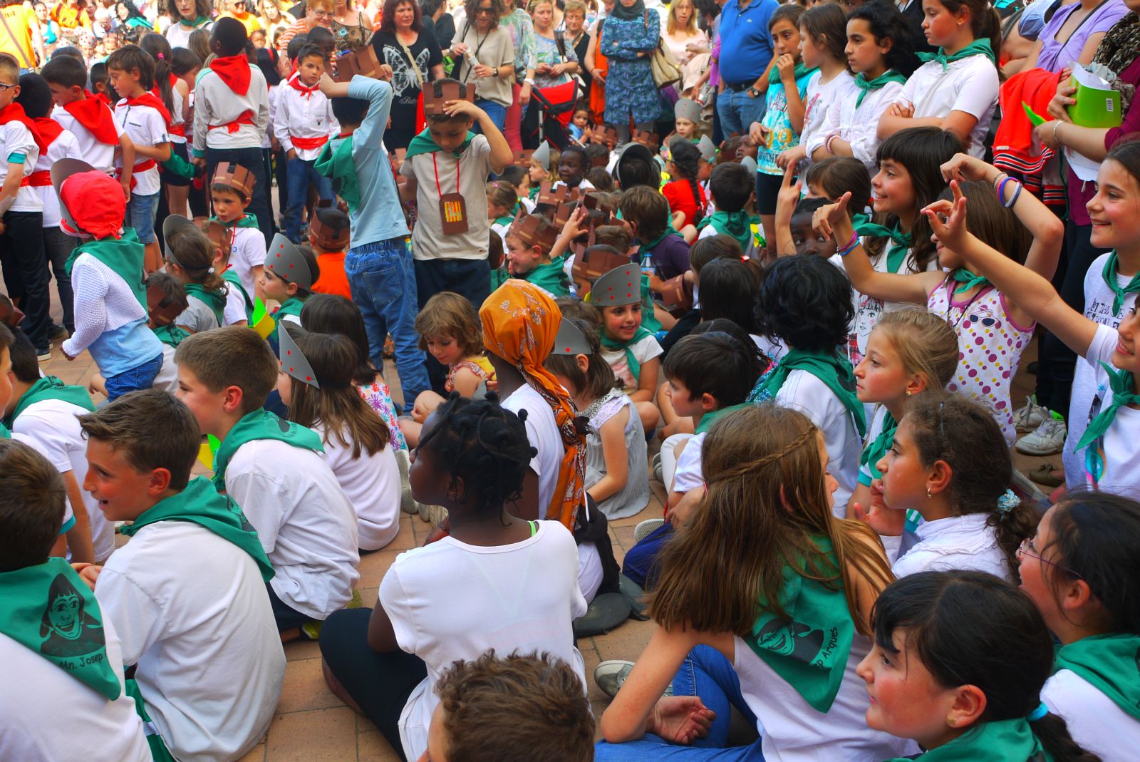 Un altre grupet de cicle mitjà, amb mocador vert, esperant el seu torn per ballar la polca.