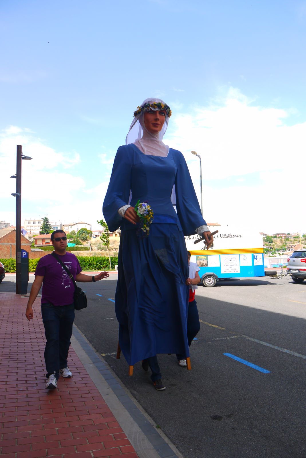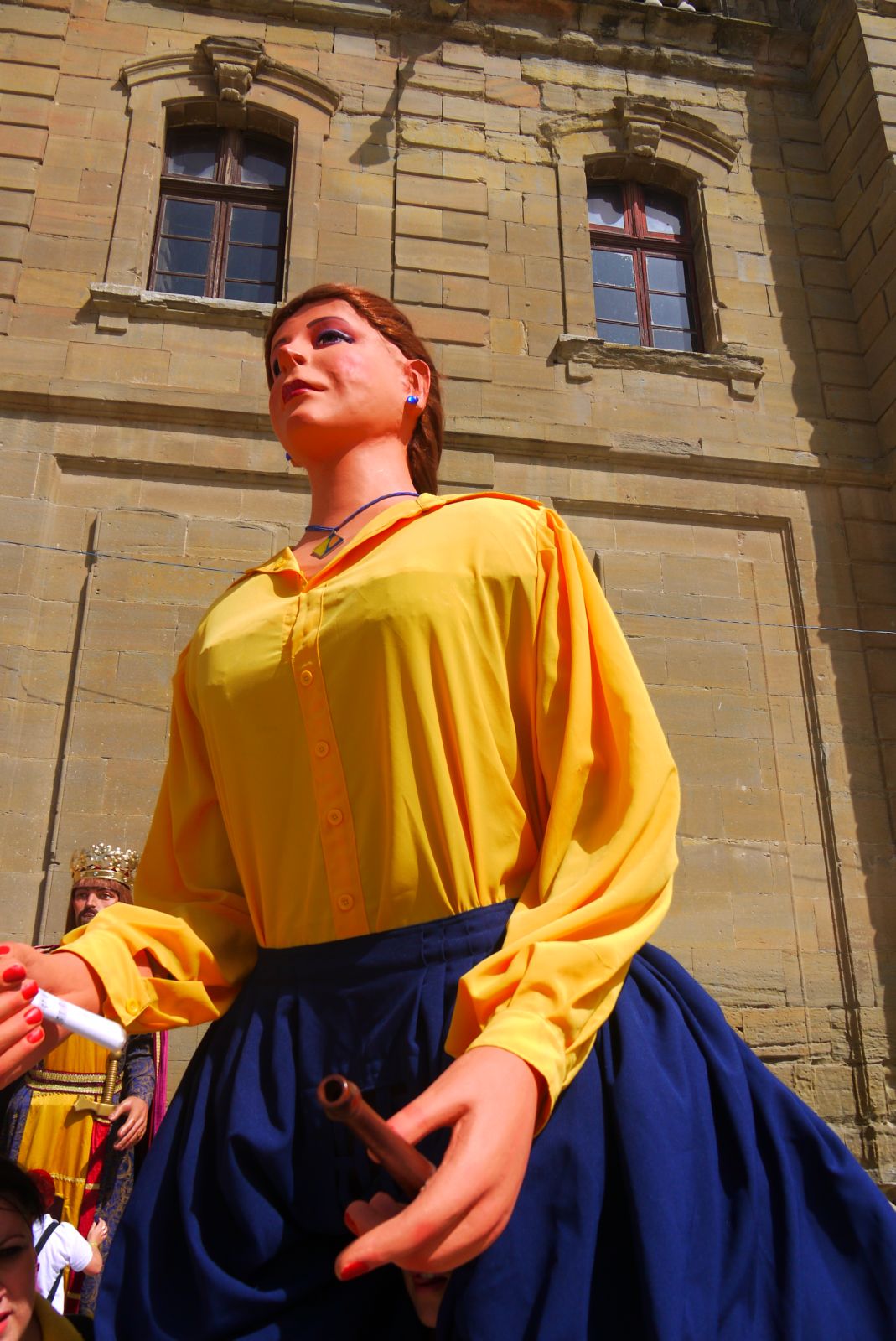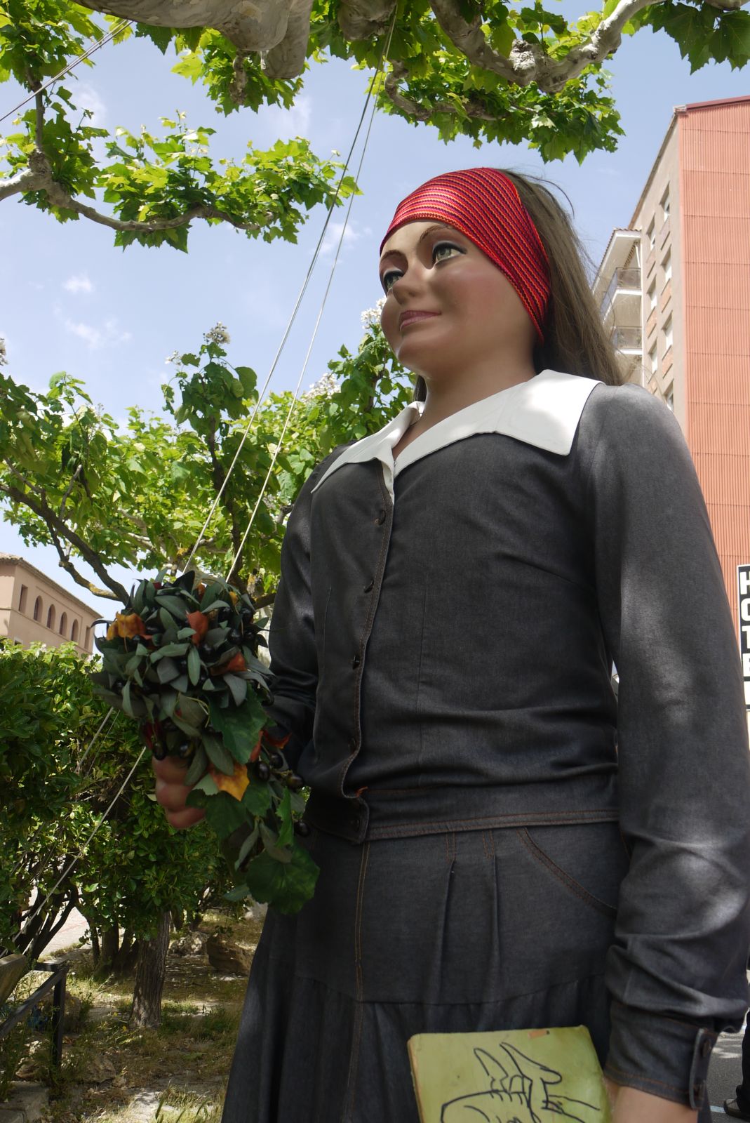 Aquesta jove tan eixerida acompanyava un parell de gegants medievals. La seva fesomia ens recorda els dibuixos de la Pilarin Bayés i portava un llibre d’aquesta il·lustradora a la mà.