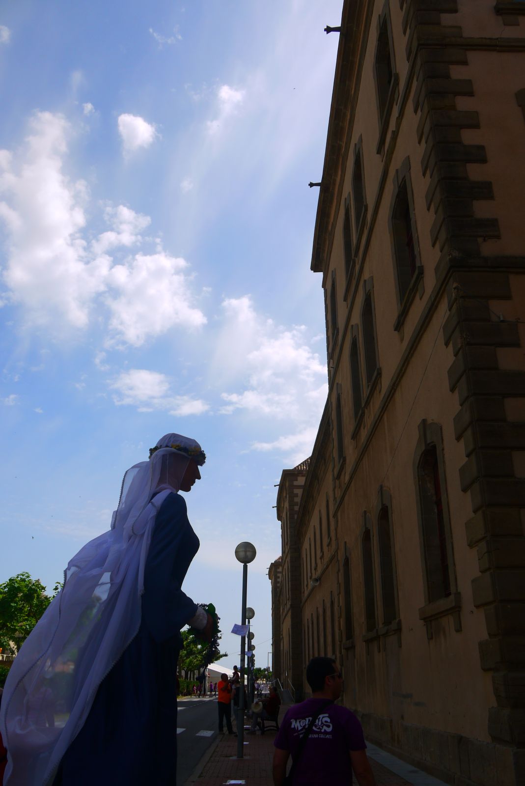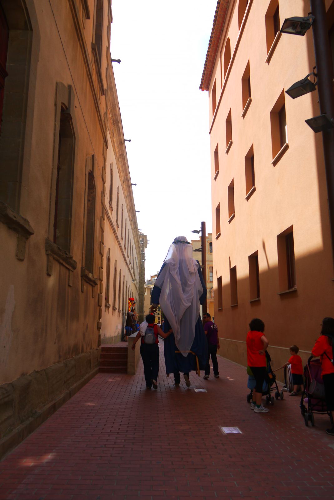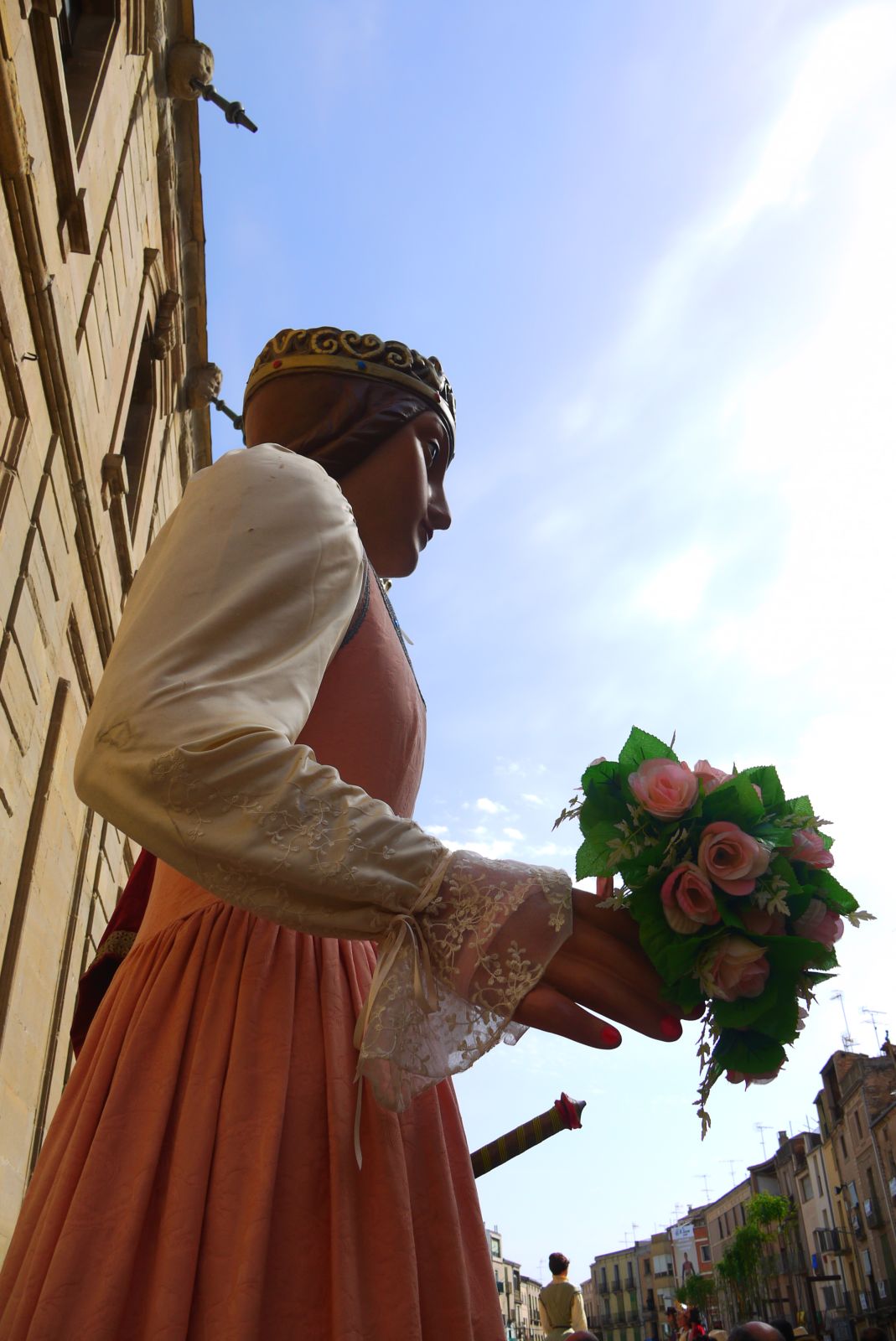 Aquesta jove tan eixerida acompanyava un parell de gegants medievals. La seva fesomia ens recorda els dibuixos de la Pilarin Bayés i portava un llibre d’aquesta il·lustradora a la mà.